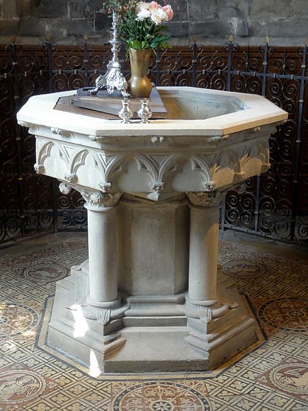 Le chœur, rarement utilisé depuis le transfert du maître-autel à la croisée après la réforme liturgique issue du concile Vatican II, comprend une première travée carrée bordée de stalles et une seconde travée avec abside polygonale ornée de boiseries et abritant l'ancien maître-autel; l'abside, élancée malgré ses pans étroits, s'appuie sur des colonnettes fines et présente un agencement original où ogives et archivoltes toriques dialoguent avec les fenêtres.
