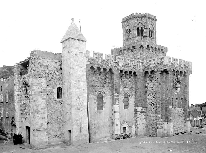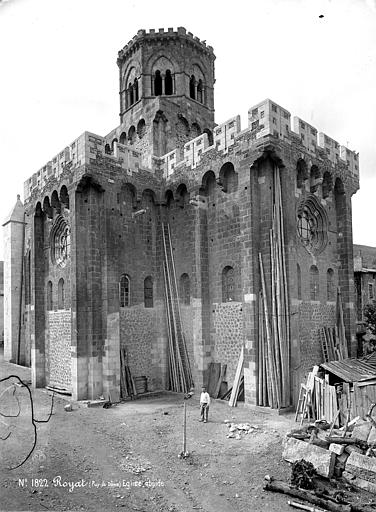 L'église Saint-Léger et l'ancien prieuré se situent à Royat, dans le département du Puy-de-Dôme. L'église, orientée à l'est, présente un plan en croix latine avec une abside carrée et une crypte sous le sanctuaire. Le prieuré, établi au nord de l'église, entoure sur trois côtés une cour rectangulaire qui devait abriter un cloître aujourd'hui détruit. Les parties les plus anciennes remontent à la fin du XIe ou au début du XIIe siècle ; l'ensemble a été édifié au cours du XIIe siècle sur des constructions antérieures. Des restaurations ont été entreprises aux XIIIe, XIVe et XVe siècles. Une bulle papale de 1165 confirme l'existence du prieuré Saint-Léger comme dépendance de l'abbaye de Mozac. Au XVe siècle, l'église et le prieuré ont été fortifiés. L'édifice a été classé au titre des monuments historiques en 1862. Construite en lave et en ardoise, l'église possède une nef sans collatéraux, formée de deux travées reposant sur des demi-colonnes à chapiteaux ornés. Le chœur rectangulaire, soutenu par la crypte, s'ouvre par un arc brisé appuyé sur des pilastres. L'édifice présente des dispositifs défensifs — créneaux et mâchicoulis — et un clocher hexagonal reconstruit au XIXe siècle. Des gravures et photographies de la fin du XIXe et du début du XXe siècle documentent l'extérieur et l'intérieur de l'église. Des ressources complémentaires sont consultables dans les bases Clochers de France et Mérimée.