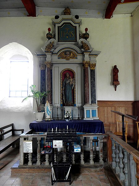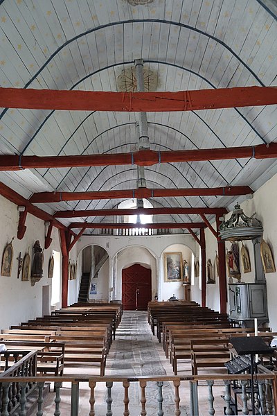 L'église Saint-Léger de Saint-Léger-des-Prés (Ille-et-Vilaine, Bretagne), accompagnée du presbytère attenant, s'élève au centre du bourg et reste entourée de son cimetière. Elle appartenait dès le XIe siècle aux bénédictins de l'abbaye Saint-Florent-de-Saumur, qui y fondèrent un prieuré qu'ils unirent à celui de Tremblay jusqu'en 1769. Des vestiges de l'époque romane subsistent dans le gros œuvre de la nef, témoignant du plan primitif à nef unique avec un chœur légèrement plus étroit. L'édifice a été rebâti aux XVe et XVIe siècles, comme l'indique la charpente encore en place, puis a connu des reprises aux XVIIe et XVIIIe siècles. Une ouverture du mur nord de la nef porte la date de 1765 et la tribune a été construite en 1820. Un arc séparait encore le chœur de la nef au début du XIXe siècle ; cet arc diaphragme a été supprimé lors des remaniements du XIXe siècle. Le bâtiment présente un plan rectangulaire : le pignon ouest s'ouvre par une porte en plein cintre et une petite fenêtre cintrée, tandis que le chevet est droit et aveugle. Le clocher d'ardoise comporte quatre faces ouvertes par des abat-sons et est surmonté d'une flèche octogonale très élancée. La charpente est lambrissée et peinte, ornée de motifs solaires et lunaires. L'église conserve plusieurs éléments mobiliers remarquables, notamment trois retables — le retable du maître-autel dédié à saint Léger, qui comprend une peinture de l'Adoration des mages, le retable de la Vierge au nord et le retable de saint Julien au sud — ainsi qu'un tabernacle et des statues, dont saint René et saint Yves. La chaire à prêcher a été inscrite aux monuments historiques en 1972. L'édifice est inscrit au titre des monuments historiques depuis le 13 novembre 1980.
