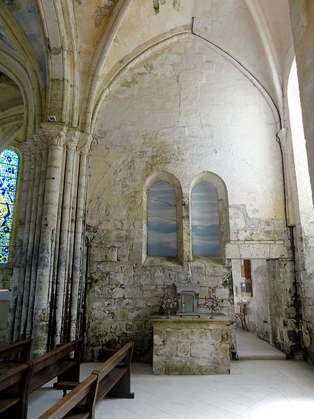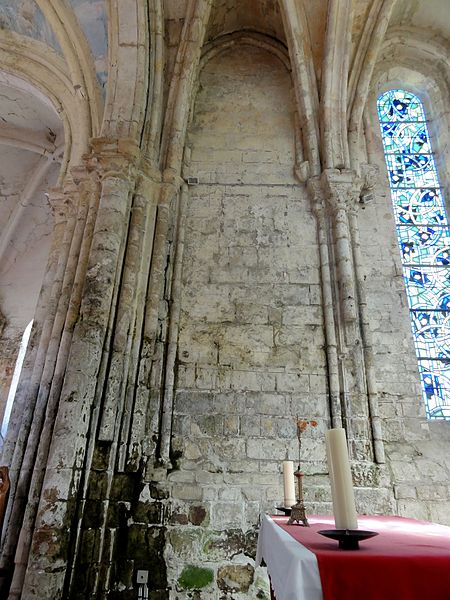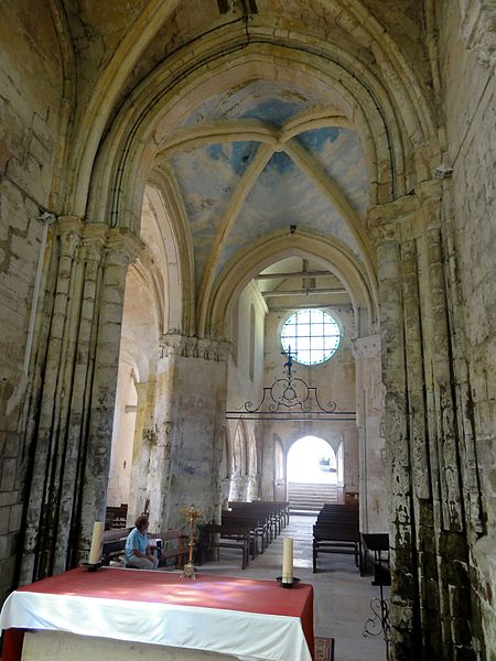L'église Saint-Léger est une église catholique paroissiale située au centre de Vauciennes, dans la vallée de l'Automne, département de l'Oise en Hauts-de-France. Elle a été édifiée entre la fin du XIIe siècle et le second quart du XIIIe siècle, période pendant laquelle a été bâtie la nef, et relève principalement du gothique primitif, sauf les bas-côtés qui datent de 1628. De dimensions modestes, l'édifice présente le plan minimal d'une église gothique complète : une nef de trois travées avec bas-côtés, un transept et un court chœur terminé par une abside pentagonale. La façade occidentale se distingue par une grande rosace qui a perdu son réseau et par un portail à quintuple archivolte, tandis que les chapiteaux de la nef portent une sculpture naturaliste, encore perceptible malgré l'altération due à l'humidité. Le sol marécageux du village a très tôt gêné la construction : deux chapelles orientées n'ont pas été achevées, le clocher n'a pas été développé en étage de beffroi et des reprises structurelles ont été nécessaires dès l'origine. Malgré un exhaussement important, les fondations baignent toujours dans l'eau et l'humidité a rongé la sculpture de nombreux chapiteaux. Classée au titre des monuments historiques par arrêté du 23 février 1951, l'église dépend aujourd'hui de la paroisse Saint-Sébastien de Crépy-en-Valois et n'accueille des messes dominicales qu'environ tous les deux mois. Implantée rue de l'Église, presque face à la mairie, l'église est orientée vers la voie publique sans parvis ; son élévation méridionale jouxte une propriété privée, le nord est bordé par l'ancienne école et le chevet ouvre sur un terrain municipal accessible depuis le parking de la rue de l'Église. L'édifice n'a pas fait l'objet d'une monographie complète ; les repères chronologiques proviennent d'une analyse stylistique qui situe le début des travaux à la fin du XIIe siècle et leur achèvement dans les années 1230–1240, selon Dominique Vermand. Les chapelles orientées prévues au nord et au sud n'ont jamais été menées à terme : la chapelle sud a été élevée à mi-hauteur et réutilisée pour la sacristie, la chapelle nord n'a été que brouillonnée. Des désordres structurels liés au terrain humide sont visibles dans l'appareil ; Vermand estime que des piles occidentales de la croisée ont été reprises au moment de l'ouverture de la nef, et des interventions plus tardives datent de 1628 pour la reconstruction des bas-côtés et de 1686 pour des travaux de restauration et le renforcement des contreforts de l'abside. Sous l'Ancien Régime, la paroisse relevait du doyenné de Coyolles et de l'archidiaconé de la Rivière dans le diocèse de Soissons ; la seigneurie dépendait des comtes de Crépy avant d'être cédée par le duc Philippe d'Orléans à l'abbaye de Longpont. À la Révolution la paroisse de Chavres a été réunie à celle de Vauciennes, le diocèse de Soissons a été supprimé et la paroisse a été rattachée successivement au diocèse de Beauvais, annexé à Amiens lors du concordat de 1801, puis de nouveau au diocèse de Beauvais après son rétablissement en 1822 ; le cimetière a été transféré en 1828. L'intérieur s'atteint par neuf marches aboutissant au portail occidental, seul accès, et l'église, régulièrement orientée, développe un plan cruciforme symétrique le long de son axe. La nef, relativement haute par rapport aux dimensions générales, n'a jamais été voûtée : des supports et des tailloirs montrent qu'un voûtement avait été prévu, mais le choix d'une nef non voûtée semble lié aux contraintes du terrain ; les bas-côtés et la nef sont couverts de fausses voûtes en berceau en bois et plâtre, alors que le transept et le chœur sont voûtés d'ogives. Les grandes arcades en tiers-point, à double rouleau, retombent sur des chapiteaux uniques aux corbeilles sculptées de feuilles polylobées, dont la plupart ont souffert de l'humidité ; les hautes baies de la nef, longues et étroites, ont été bouchées lors de l'édification des bas-côtés en 1628. La croisée du transept s'appuie sur quatre piles losangées ouvragées de faisceaux de colonnettes qui reçoivent doubleaux et ogives, mais plusieurs fûts ont été noyés dans des massifs de maçonnerie ou remplacés, et l'enfoncement du sol a fait disparaître les bases anciennes. Le chœur, bien proportionné malgré sa profondeur modeste, est subdivisé par un doubleau intermédiaire reposant sur des faisceaux de colonnettes ; des arcs de décharge au nord permettent de franchir des sources, et les cinq hautes baies en plein cintre de l'abside, dépourvues de remplage, assurent un éclairage marqué. À l'extérieur, la façade ouest est dominée par un grand oculus entouré d'un double ébrasement et d'un cordon à têtes de clous, tandis que le portail s'orne d'une quintuple archivolte portée par petits chapiteaux ronds sculptés ; une corniche de feuilles entablées court le long des murs gouttereaux. Un bas-relief dit « le souffleur », représentant une tête soufflant dans l'oreille d'un homme barbu avec une corne de vache, se lit à l'angle entre la nef et le croisillon sud. Le « clocher » n'est pas un beffroi achevé : il comprend un étage intermédiaire aveugle et une bâtière perpendiculaire à l'axe du vaisseau, épaulés par des contreforts aux angles et percés de baies abat-son vers le nord et le sud, disposition expliquée par l'instabilité du terrain et par le développement linéaire du village. Le transept sud porte une tourelle d'escalier octogonale desservant les combles et étayant les accès au clocher, et les contreforts du chevet, étroits mais saillants, traduisent une réfection tardive du XVIIe siècle qui respecte le style gothique primitif. Le mobilier compte peu d'éléments anciens classés : Louis Graves signalait en 1843 des fonts baptismaux en marbre et des 