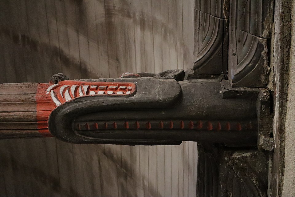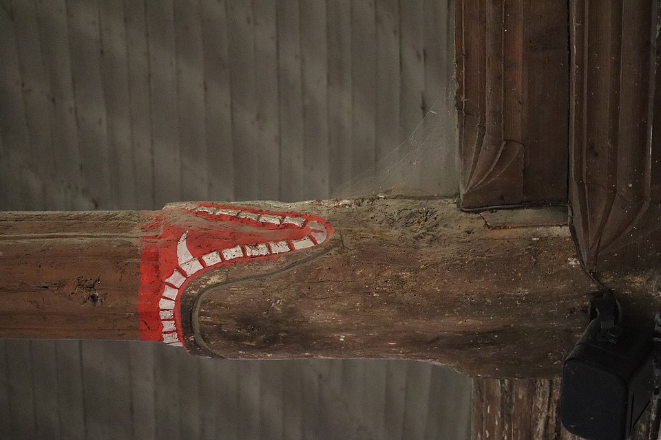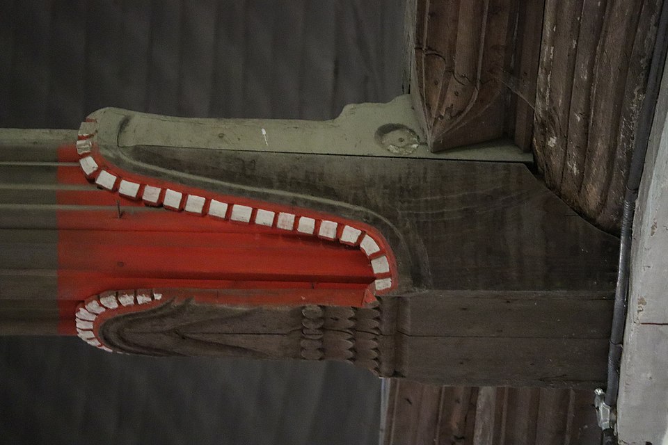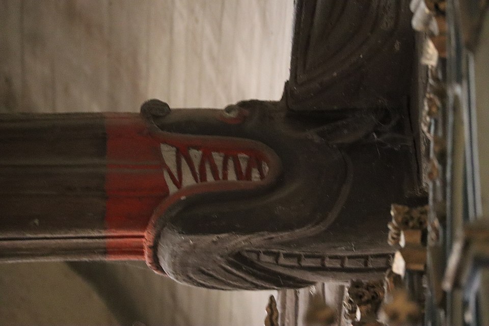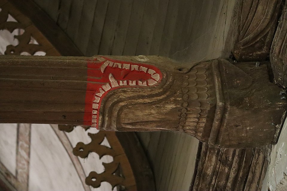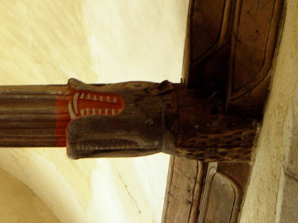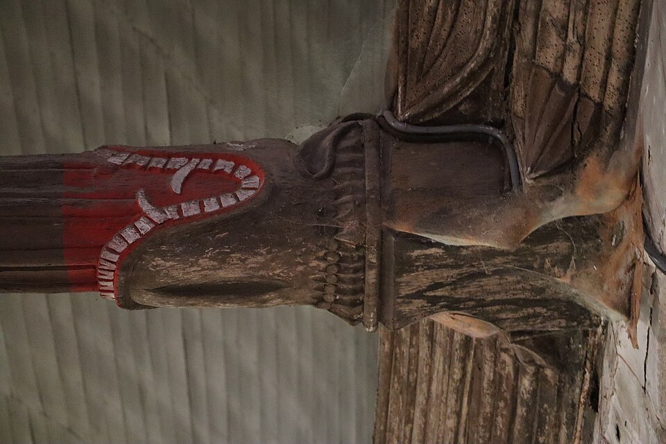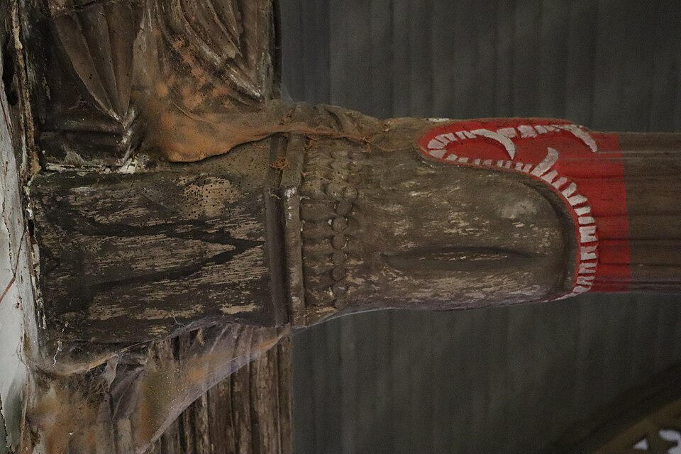 À l'intérieur, l'église est orientée et organisée autour d'une nef principale accompagnée au nord d'un collatéral formé par quatre chapelles sur toute la longueur, tandis que le sud compte deux chapelles, dont l'une se loge sous la tour-clocher; les dernières chapelles de chaque côté forment un pseudo transept bas. L'arcature qui sépare les deux nefs est composée de quatre arcs ogivaux de tailles différentes, appuyés sur des colonnes ou piliers aux chapiteaux variés; côté collatéral, ces arcs percent l'ancien mur gouttereau des chapelles. L'édifice développe un parti bas sans étage et est entièrement voûté de bois : la nef et le chœur sont couverts par un douvis qui repose sur des sablières apparentes, tandis que le collatéral nord présente des douvis successifs perpendiculaires à l'axe de circulation. Le plafond de la chapelle sous la tour est orné de moulures d'époque XIXe. La distribution intérieure s'organise selon l'axe est-ouest ; l'église compte trois accès — une porte centrale à l'ouest, une entrée sur le flanc sud et une porte dans la première chapelle sud — et la condamnation de la porte occidentale du collatéral nord renforce la prééminence du vaisseau principal. La lumière provient principalement de la maîtresse-vitre du chevet, accentuant la mise en valeur des vitraux de la Passion.
