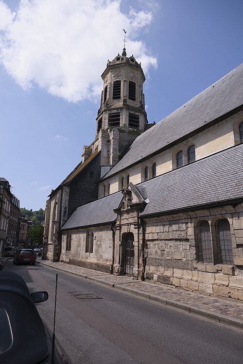 L'église Saint-Léonard est une église catholique située dans le quartier sud-est de Honfleur, dans le Calvados. Elle se dresse au bas du coteau, sur une légère déclivité aménagée en jardin. Un sanctuaire existait déjà en 1186 à l'emplacement actuel, comme l'atteste une charte de l'abbaye de Grestain. De l'édifice gothique primitif, la façade en gothique flamboyant est la partie la mieux conservée ; on y repère également quelques éléments de la Renaissance. La majeure partie de l'église a été incendiée par les Huguenots pendant les guerres de religion au XVIe siècle. Elle a ensuite été reconstruite aux XVIIe et XVIIIe siècles, ce qui explique l'originalité du clocher en dôme, rare en Normandie et évoquant ceux que l'on rencontre dans l'Est de la France. L'intérieur est entièrement décoré de peintures murales et la voûte est en bois avec la charpente apparente. L'édifice a été classé au titre des monuments historiques en 1980. Parmi le mobilier, l'orgue de tribune signé Charles Mutin (1901) est un objet classé au titre des monuments historiques en 1993 (notice n° PM14001310).