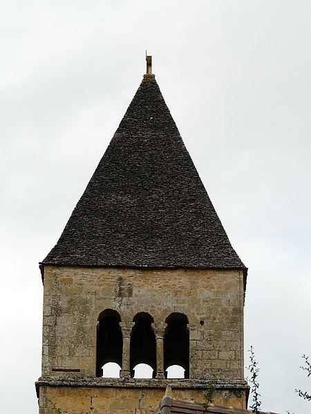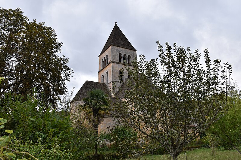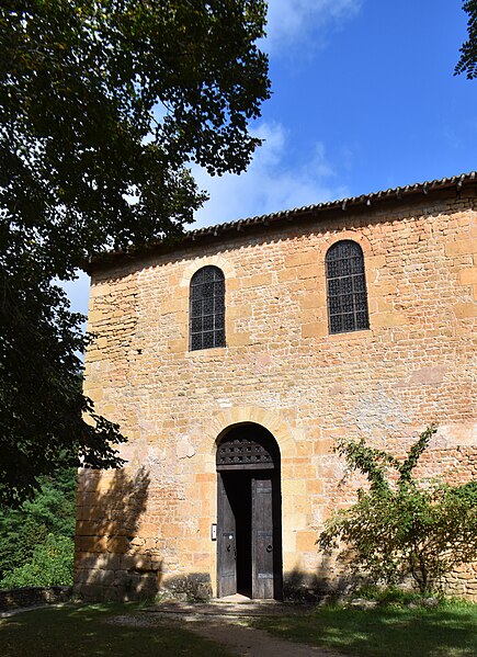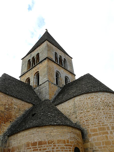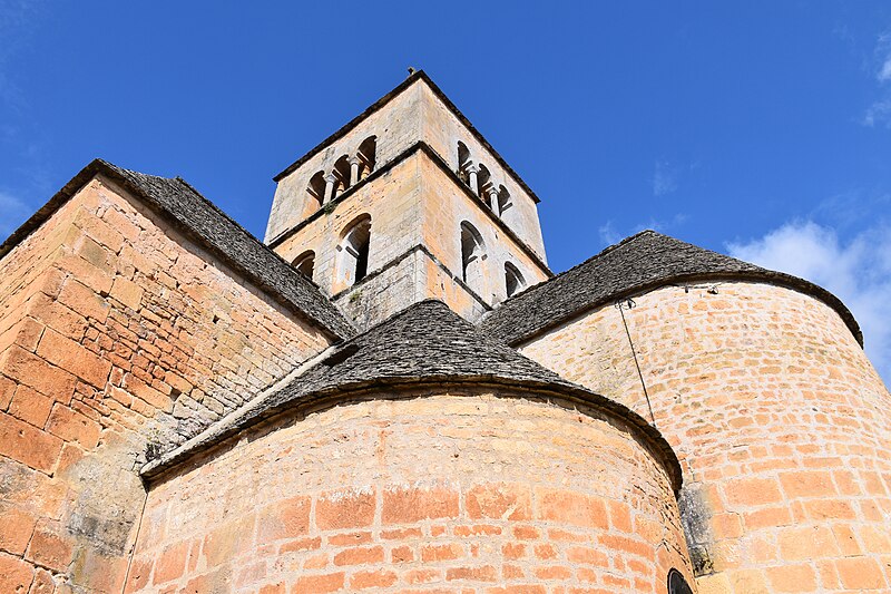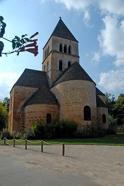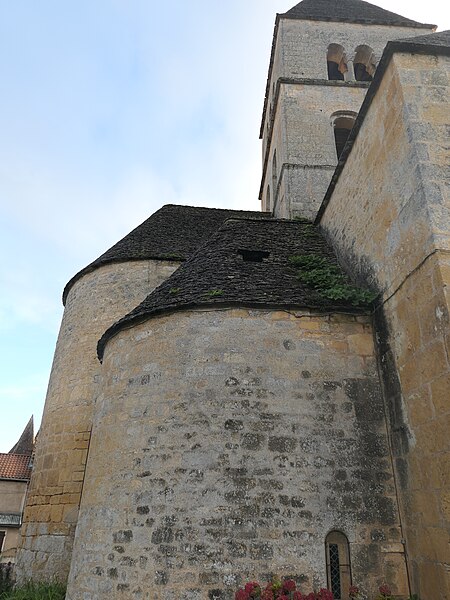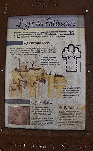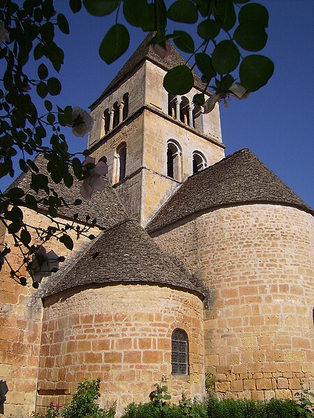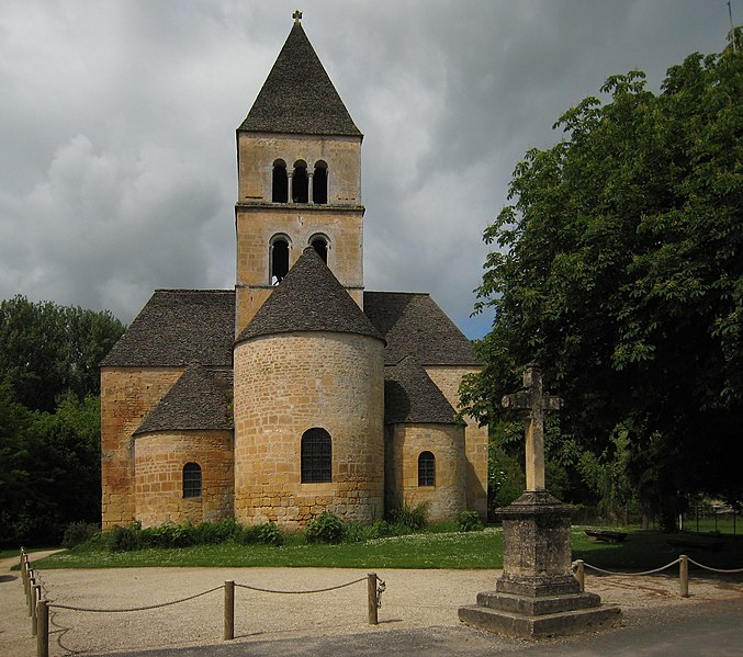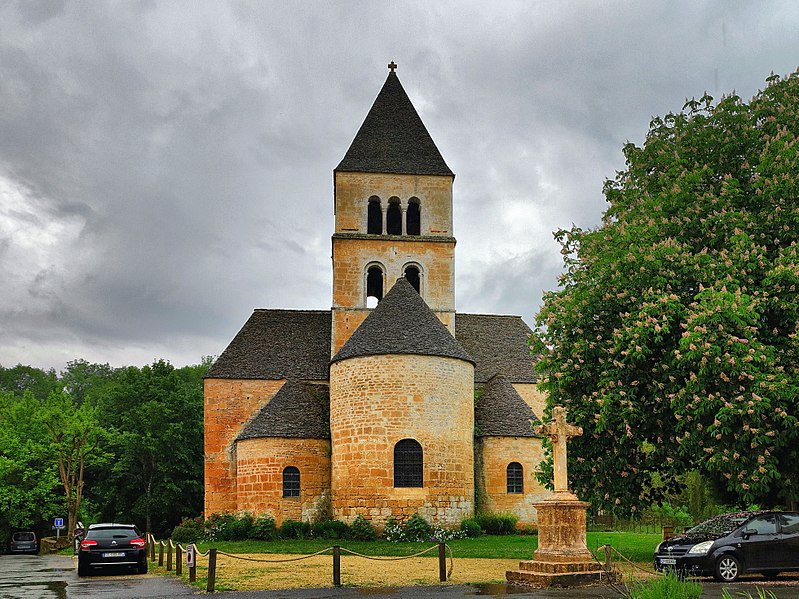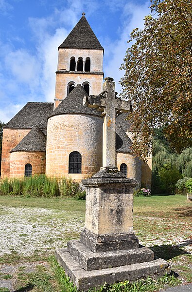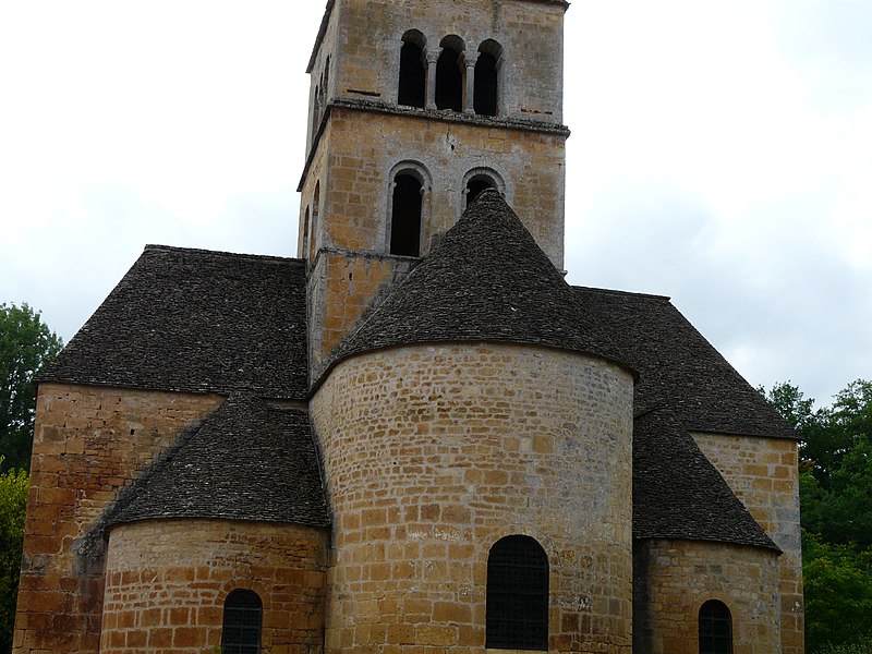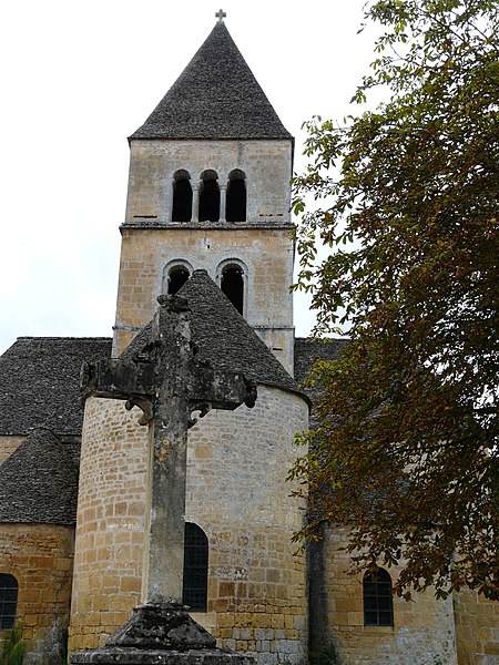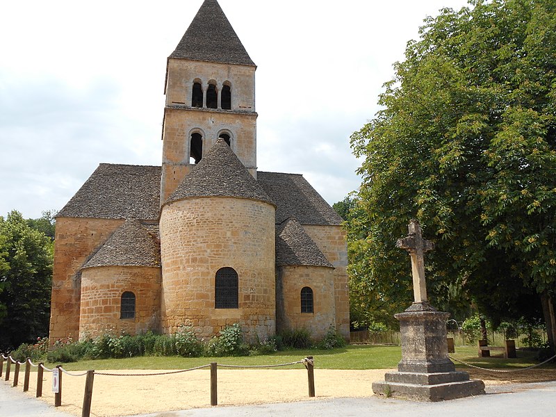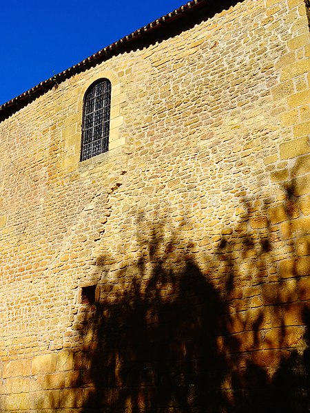 Selon la tradition locale, l'église aurait été édifiée sur l'emplacement d'un temple romain. Du XIIe siècle subsistent le chœur et les transepts ; la nef a été reconstruite ultérieurement, à la fin du XVIIe ou au XVIIIe siècle. Le chœur, de plan circulaire, est flanqué de deux absidioles et son cul-de-four est orné de peintures. Le transept communique avec la nef par une grande arcade sur la croisée et par deux autres, très étroites, sur les bras, ce qui suggère que la disposition primitive comprenait une nef et deux bas-côtés. La croisée du transept, de plan carré, est couverte par une coupole sur pendentifs reposant sur quatre doubleaux.