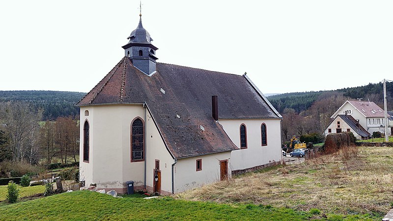 L'église catholique Saint-Louis se situe rue Principale à Birkenwald, dans le Bas-Rhin. Elle est inscrite au titre des monuments historiques depuis 1930. Citée en 1158 comme possession de l'abbaye d'Andlau, l'église a sans doute été reconstruite à la fin du Moyen Âge ; de cet édifice médiéval, seule subsiste le chœur. Sa datation reste incertaine : les fenêtres en arc brisé présentent un chambranle en grès non mouluré, sans réseau, tandis que la voûte qui couvre le chœur semble postérieure, peut‑être du XVIIIe siècle. Contre le mur nord du chœur s'appuie un corps de bâtiment probablement du XVIe siècle ; sa porte d'entrée à chambranle mouluré porte une marque de tâcheron caractéristique de cette époque et abrite un escalier en vis montant au comble. La nef a été reconstruite en 1704, date gravée sur la croix sommitale du mur-pignon occidental et sur l'armoire eucharistique du chœur. Une sacristie, peut‑être édifiée au XIXe siècle, a été ajoutée au sud du chœur ; au‑dessus se trouve un édicule en grès présentant un cadran d'horloge en pierre peinte. Sous ce cadran, un parchemin sculpté porte deux écus aux armes des Duprès d'Ordal, seigneurs de Birkenwald ; les armes d'alliance sont celles d'Elisabeth de Musiel, épouse de Charles Ferdinand Duprès d'Ordal (1732–1783). Un projet de tour‑porche, daté de la fin du XIXe siècle, n'a pas été réalisé ; un porche a toutefois été élevé devant la façade occidentale en 1951.