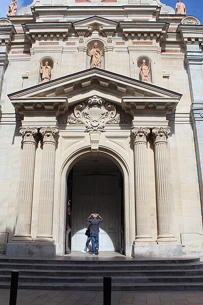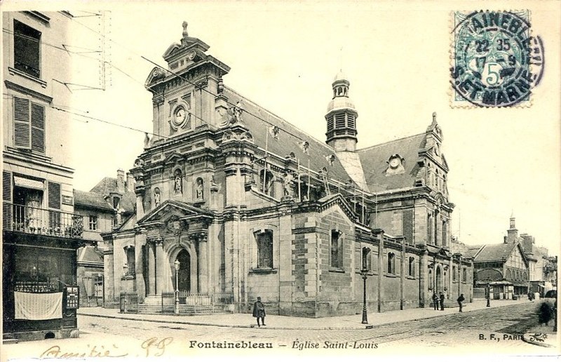 L'église Saint-Louis est l'église paroissiale catholique de Fontainebleau, rattachée au diocèse de Meaux ; son curé actuel est le père José Antonini. Classée au titre des monuments historiques par arrêté du 22 août 1949, elle appartient à la commune. L'édifice occupe un îlot entre la rue de la Paroisse, la rue Grande, la place de la République et la cour de la Mission, qui le sépare du bâtiment voisin dit de la Mission ; l'accès principal donne sur la rue de la Paroisse et cinq marches précèdent l'entrée, l'église étant légèrement surélevée par rapport au trottoir. Avant la création d'une paroisse à Fontainebleau, les habitants se rendaient à la messe à l'église Saint-Pierre d'Avon, et le registre paroissial d'Avon contient l'acte de baptême du futur Louis XIII. Pour remédier aux difficultés d'accès liées aux clôtures du parc du château, Marie de Médicis fit édifier, entre 1611 et 1614, une chapelle annexe confiée à Claude Matin et dédiée à saint Louis. Le 16 novembre 1661, Louis XIV et la reine-mère Anne d'Autriche érigèrent la chapelle en paroisse de Fontainebleau ; Antoine Durand, prêtre de la Mission, en fut le premier curé. Le registre de la paroisse conserve notamment l'acte du baptême de Louis Lully, célébré le 9 septembre 1677 en présence d'Emmanuel-Théodose de La Tour d'Auvergne et d'Antoine Durand, avec Louis XIV et Marie-Thérèse d'Autriche pour parrains. Au XVIIIe siècle, le roi Louis XV et la reine Marie Leszczynska furent parrain et marraine d'une cloche de l'église. Pendant la Révolution, la Société populaire de Fontainebleau, fondée le 5 mai 1791, investit l'église le 4 décembre 1793, qui fut transformée en temple de la Raison, pillée et aménagée sous la direction de l'architecte Saulgeot avec banquettes, une tribune en nef et une inscription jacobine. La cloche royalement baptisée fut démontée, brisée et les débris utilisés pour fondre une nouvelle cloche montée dans l'église Saint-Philippe-et-Saint-Jacques de Veneux-les-Sablons, inaugurée le 11 novembre 1828. Au XIXe siècle, le curé sollicita en 1852 une subvention auprès de Napoléon III pour agrandir l'église ; l'empereur accorda en 1859 une somme de 200 000 francs pour des travaux réalisés d'après les plans de l'architecte de la ville Lebois, achevés en 1868. Le 10 janvier 2016, un incendie criminel détruisit une partie de l'édifice et endommagea gravement plusieurs œuvres classées, dont la statue de la Vierge de Franchard, un retable et un autel ; des hosties consacrées furent profanées et le ciboire volé. Le 11 janvier 2016, le ministre de l'Intérieur constata la gravité des faits, et une messe de réparation fut célébrée le 24 janvier en présence de personnalités politiques ; un suspect placé en garde à vue fut ensuite jugé coupable mais pénalement irresponsable pour cause de troubles psychiatriques lourds. Du clocher provient une girouette en forme de coq datée de 1701 et restaurée en 1877 ; cet élément, retrouvé par un antiquaire et adjugé 676 euros le 21 juillet 2021, a fait l'objet d'une mise en vente par la maison Osenat prévue le 30 mars 2024, le pôle missionnaire souhaitant la ramener sur place ; la girouette actuellement en place, de couleur argentée, aurait été posée lors d'une restauration dans les années 1960. La paroisse a été desservie par une succession de curés depuis Antoine Durand, premier curé de 1661 à 1677 ; parmi ceux qui se sont succédé figurent Denis Laudin, Maurice Faure (qui fit bâtir la chapelle Notre‑Dame‑de‑Bon‑Secours) et, plus récemment, José Antonini, en fonction depuis 2014. Le mobilier comprend la statue médiévale de Notre‑Dame‑de‑Franchard, issue du prieuré du même nom en forêt de Fontainebleau, qui avait échappé aux destructions de la Révolution mais a disparu lors de l'incendie de 2016 ; des restes de la statue ont été retrouvés lors du nettoyage. L'orgue, dont le buffet fut offert par Louis XIV, a été construit entre 1666 et 1670 par Gabriel Bunel, restauré par François‑Henri Clicquot en 1786, travaillé par Aristide Cavaillé‑Coll en 1884 puis transformé et agrandi en 1925 par la Maison Mutin‑Convers ; son inauguration du 29 mars 1925 réunit choristes, élèves et solistes, avec les pianistes Charles Marie Widor et Marcel Laisné. Restauré en 1958 par la Maison Ruche sous la direction de Geneviève de la Salle, muet à partir de 1982, l'instrument fit l'objet d'une réfection complète entre 1989 et 1992 par Benoist et Sarelot et a été partiellement endommagé par la suie lors de l'incendie de 2016 ; il comporte quarante jeux réels, des transmissions mécaniques, des accouplements et des dispositifs d'expression. Parmi les personnalités liées à la paroisse figurent le peintre Claude Lefèbvre, baptisé le 12 septembre 1632, le musicien Louis Lully, baptisé le 9 septembre 1677, et Marie‑Anne Vaillot, baptisée le 13 mai 1734.