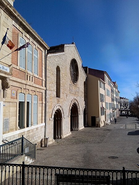L'église Saint‑Louis, située à Hyères (Var), occupe l'ancienne église du couvent des Franciscains, dite des Cordeliers, et donne sur la place de la République, jouxtant l'ancien palais de justice. Les franciscains s'installent en Provence dès 1230 et le couvent est probablement construit vers le milieu du XIIIe siècle, sous l'influence d'Hugues de Digne. Selon Jean de Joinville, Saint Louis, de retour de la septième croisade, fit escale à Hyères en juillet 1254 et manifesta son attachement aux Frères Mineurs ; une stèle face à la plage de l'Ayguade rappelle ce passage. Au cours de la seconde moitié du XIVe siècle, les franciscains entrent en concurrence avec le clergé de l'église Saint‑Paul, aboutissant à un compromis en 1371 qui correspond vraisemblablement à l'ouverture des premières chapelles côté nord. La tradition rapporte qu'en 1589 le roi Charles IX vint toucher les malades des écrouelles, et la ville tint le 11 janvier 1789 la réunion préparatoire aux états généraux dans l'édifice. Le couvent est fermé en 1791 ; l'église sert de cantonnement en 1793, est vendue en 1796 puis rachetée par la commune en 1822 pour 15 000 francs afin d'éviter sa démolition. La municipalité décide sa restauration le 10 avril 1832 ; l'édifice est classé au titre des monuments historiques en 1840 et devient église paroissiale après le transfert du titre paroissial de Saint‑Paul par ordonnance royale en 1842. En 1854 la façade est restaurée et un clocher est construit pour un montant de 78 000 francs, puis la chapelle Notre‑Dame de Lourdes est édifiée en 1874. Pour des raisons architecturales et historiques, l'hypothèse d'une construction templière au XIIe siècle est rejetée. L'ancien jardin du couvent a laissé place à l'actuelle place de la République ; au début du XIXe siècle, entre 1810 et 1812, cette place est reliée à la place Clemenceau par un escalier. Depuis 2012, la paroisse est confiée par le diocèse de Fréjus‑Toulon à la congrégation de l'Oratoire de Saint‑Philippe Néri ; en 2019 elle comptait trois prêtres et deux frères. Les funérailles du rugbyman Christophe Dominici y ont été célébrées le 4 décembre 2020. L'entrée se fait par un large escalier qui descend vers trois portails en plein cintre. L'architecture mêle des formes romanes et gothiques : l'édifice présente des croisées d'ogives, un vaisseau long de 48 mètres et large de 17 mètres, trois nefs et six travées. La nef centrale est de style gothique tandis que les nefs latérales sont couvertes de voûtes romanes en berceau avec arcs doubleaux. Les vitraux, réalisés en 1847 par l'atelier Maréchal de Metz, contribuent à la qualité de l'ensemble. L'inventaire de 1905 mentionne deux harmoniums, huit confessionnaux et deux grands bénitiers en marbre ; quatre confessionnaux et les bénitiers en marbre ont depuis disparu. Le buffet de tribune date de 1848 ; la partie instrumentale de l'orgue a été réalisée en 1878 par le facteur François Mader ; l'église possède un grand orgue et un orgue de chœur. En 1883, deux tableaux illustrant la vie de saint Louis sont placés dans le chœur, puis déplacés et stockés à la collégiale Saint‑Paul avant d'être restaurés ; le premier, signé Louis‑Charles Arsenne (1840), représente le débarquement à l'Ayguade et mesure 4,26 m sur 5,44 m, le second montre saint Louis et son frère Robert portant un reliquaire contenant la couronne d'épines. Un tableau du XVIIe siècle représentant sainte Véronique est classé aux Monuments historiques depuis 1912. Parmi les éléments remarquables figurent les roses intérieure et extérieure, des représentations de Jésus entre saint Pierre et saint Paul, ainsi qu'une vue d'ensemble qui s'articule avec la place de la République. La bibliographie signale notamment l'ouvrage de Paul Turc consacré à l'église Saint‑Louis (1992) et la notice consacrée à l'orgue Mader (1878).