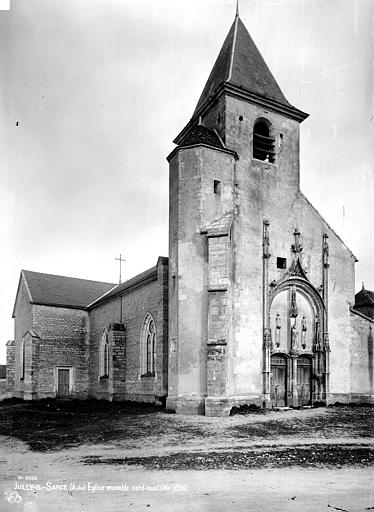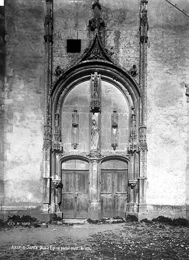 L'église Saint‑Louis se trouve à Jully‑sur‑Sarce, dans le département de l'Aube. Rebâtie en 1859-1860 sur l'emplacement de l'édifice antérieur, elle a conservé le portail du XVIe siècle. Elle a été bénie le 4 novembre 1860 sous le vocable de saint Louis. L'édifice est inscrit au titre des monuments historiques en 1926. L'intérieur conserve un mobilier ancien remarquable : un bénitier circulaire du XIIe siècle soutenu par quatre piliers, deux statues de la Vierge à l'Enfant du XIVe siècle, et plusieurs statues du XVIe siècle dont un saint Éloi en calcaire avec des traces de peinture et un autre en chêne peint. On y trouve aussi plusieurs tableaux du XVIe siècle, notamment une Mort de Marie peint sur bois et son pendant Les Obsèques de Marie sur panneau de bois, ainsi qu'un christ en croix du XVIe siècle en bois peint en blanc. Au Moyen Âge, l'église était une succursale de la paroisse de Villemorien, dans le doyenné de Bars‑sur‑Seine. En 1044, l'évêque Hugues de Breteuil donna l'église à l'abbaye de Montier‑Saint‑Jean. L'édifice primitif datait du XIIe siècle et était placé sous le vocable de l'Assomption de la Sainte Vierge. Il possédait des reliques de saint Louis, de saint Protais et de saint Gervais, ainsi qu'une confrérie de saint Louis au XVIIe siècle.