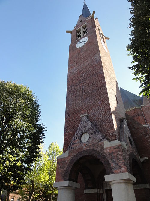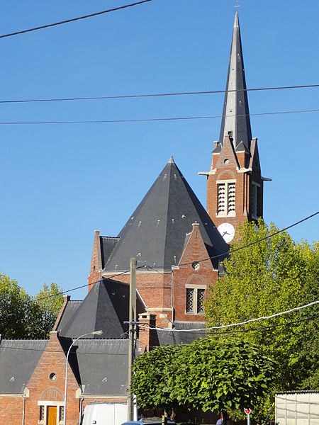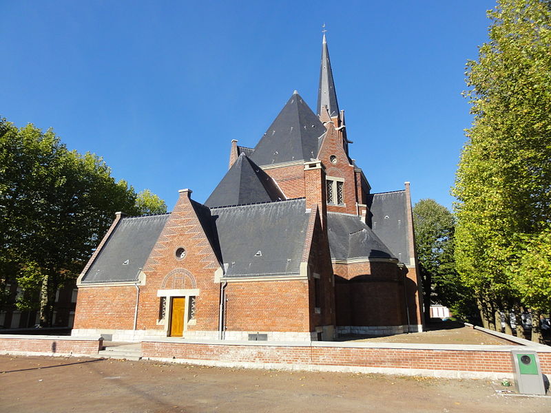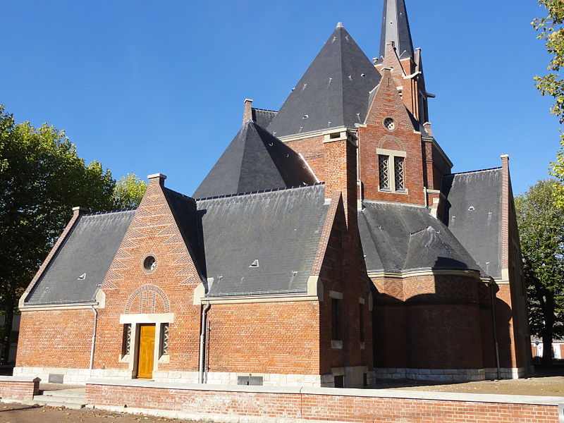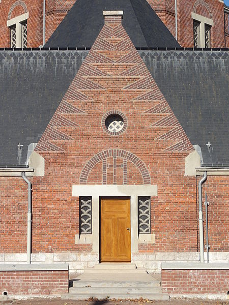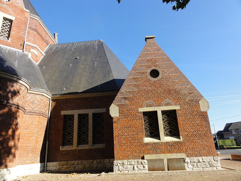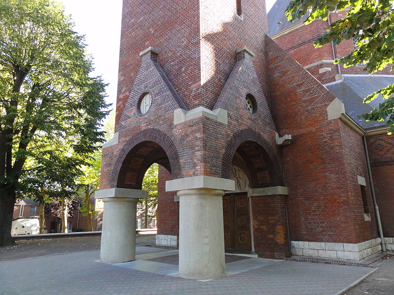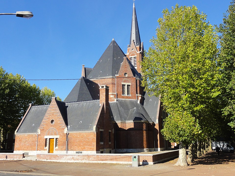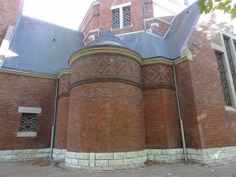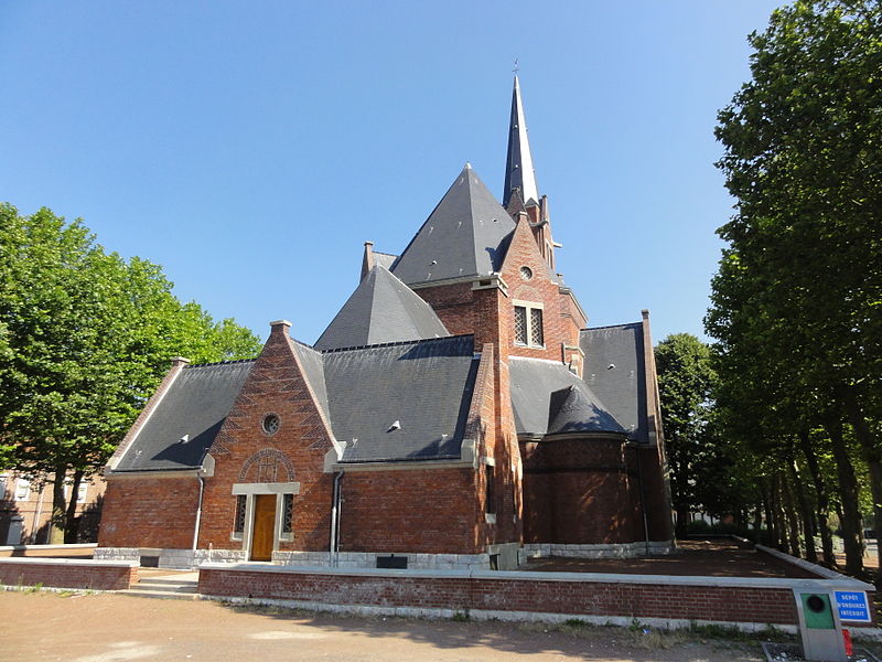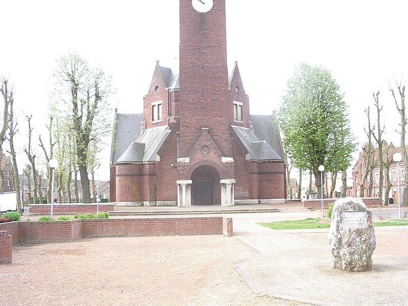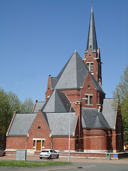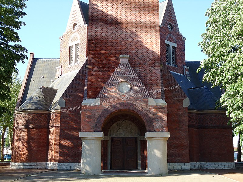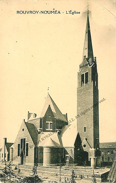 L’église Saint‑Louis de la cité Nouméa, à Rouvroy (Pas‑de‑Calais), est un édifice catholique construit à l’initiative de la Compagnie des Mines de Drocourt lors de la reconstruction d’après la Première Guerre mondiale ; elle fait partie des éléments du site n°48 inscrits au patrimoine mondial de l’Unesco le 30 juin 2012. L’édifice, érigé au printemps 1928 grâce à l’impulsion de Louis Dupont et de Noël Beaugrand, s’inscrit au centre d’un ensemble urbain organisé autour d’un axe principal réunissant écoles et presbytères, tous exécutés en brique de teinte identique par les architectes Charles Duval et Emmanuel Gonse. L’église constitue le seul exemple d’édifice à plan centré réalisé par ces architectes ; son plan rappelle la croix grecque et s’inspire de Sainte‑Sophie de Constantinople. Le clocher carré, porté par deux piliers en béton, se dresse en avant de la façade principale. L’ossature est en béton masqué par un parement de briques, la charpente métallique comportant des pannes en fer. La travée unique de la nef est couverte par une coupole reposant sur trompes intradossées à ressauts et limitée sur quatre côtés par des arcs en plein cintre, dont deux communiquent avec les bras du transept ; le chœur s’achève par une abside à trois pans. Quatre coupoles de colonnes soutenant la voûte centrale donnent accès à quatre absidioles obliques qui abritent les autels secondaires. Les principaux artisans associés au chantier sont Henri Marret pour les fresques, Raymond Couvègnes pour la sculpture, Raymond Subes pour la ferronnerie d’art, Jean Gaudin pour les verrières et l’entrepreneur M. Thibierge de Douai. L’ornementation intérieure repose largement sur des motifs en brique et des décors peints : sous les trompes à ressauts, Henri Marret a figuré en quatre scènes les œuvres sociales de saint Louis dans une dominante bleue, tandis que l’étage supérieur de la coupole présente les Évangélistes dans des tons rouges et bruns, la calotte étant ornée de huit médaillons consacrés à l’Agneau et aux sept dons du Saint‑Esprit. À l’origine, les murs étaient enduits d’un mortier de chaux ocré et les verrières ajoutaient une dominante jaune à l’ensemble ; la frise du chemin de croix et la plupart des fresques ont cependant été recouvertes d’une couche de chaux éteinte, seule subsistant la fresque du chœur dite du Chêne de Vincennes, tandis qu’une partie de la frise du chemin de croix a été retrouvée sous un contreplaqué lors de travaux de rénovation en 2011 et attend une restauration. Les fonts baptismaux ont reçu une nouvelle ornementation vers 1978 du peintre polonais Eugeniusz Mucha, le linteau conservant encore l’inscription latine "QUI HABET AURES AUDIENDI AUDIAT". L’autel en marbre, don de la famille de l’abbé Casimir Grabas, renferme des reliques dont la présence est attestée par un parchemin déposé le 18 septembre 1988 à l’occasion des quarante ans de prêtrise de l’abbé Blanchant ; y figurent notamment des reliques liées à saint Clément, sainte Claire d’Assise, saint François de Sales, saint François d’Assise, sainte Jeanne de Chantal, saint Jean‑Marie Vianney et saint Théophane Vénard. La toiture en ardoise a été révisée en 1991, travaux suivis de la bénédiction de la croix du coq, et la cloche Marie‑Louise a été baptisée le 6 avril 1930 en présence comme parrain de Louis Dupont et comme marraine de Marie‑Louise Beaugrand. La paroisse, d’abord rattachée successivement aux doyennés de Vimy puis de Billy‑Montigny, a été érigée en 1931 sous le nom de Rouvroy‑Nouméa ; la communauté des sœurs de l’Immaculée Conception s’y est installée en 1934. Aujourd’hui l’église dépend du diocèse d’Arras et fait partie de la paroisse Saint‑Joseph‑en‑Haute‑Deûle du doyenné d’Hénin‑Carvin ; la messe dominicale de la communauté française y est célébrée une fois par mois. Les titulaires du service pastoral se sont succédé, côté français, de l’abbé Henri Carière à l’abbé Joseph Wachala, et, côté polonais, depuis l’abbé Bernard Berk jusqu’à l’abbé Joseph Wachala SChr, les noms et dates figurent dans les registres paroissiaux.