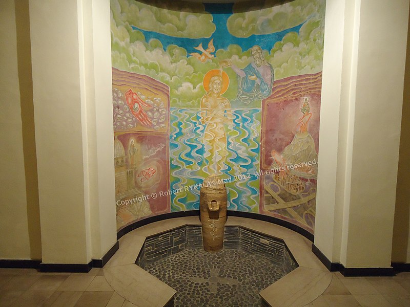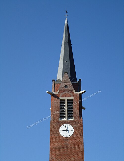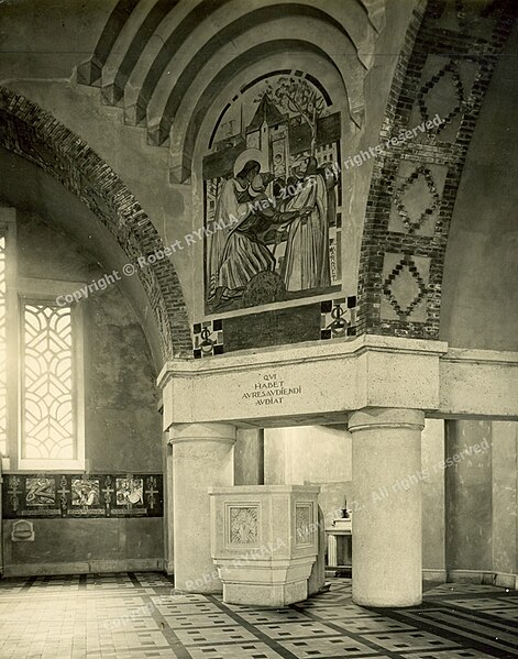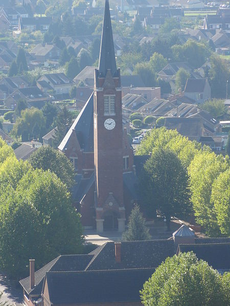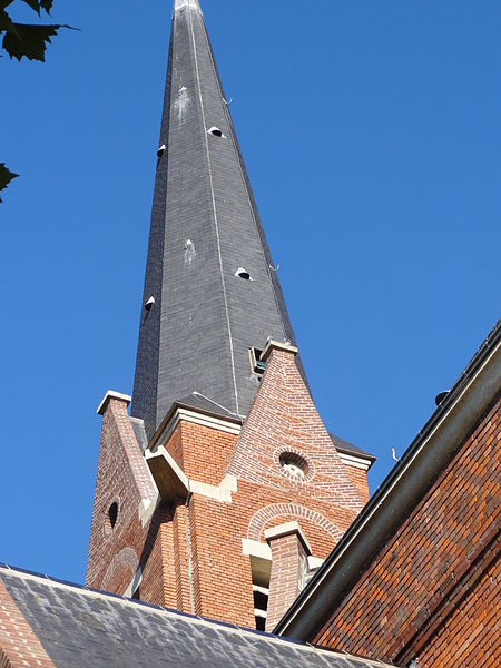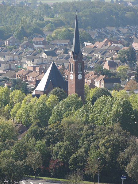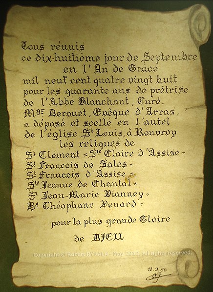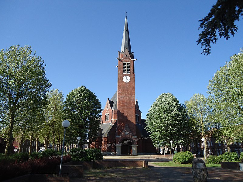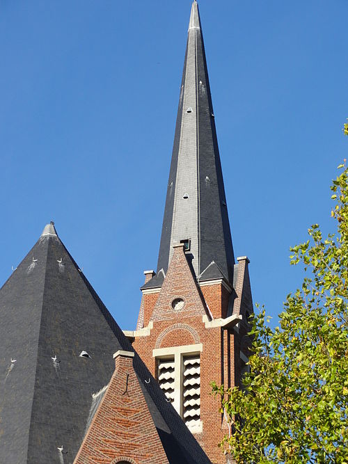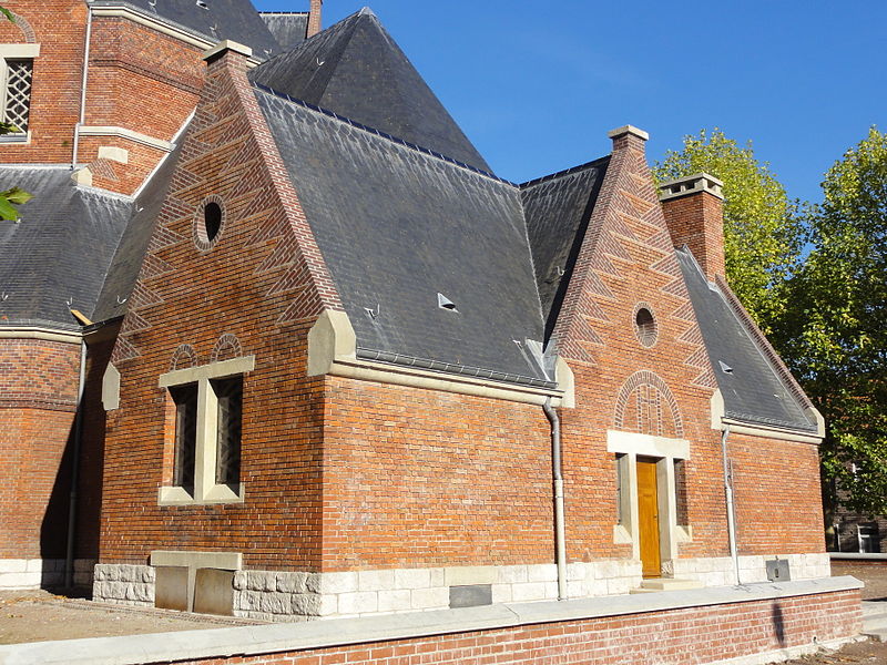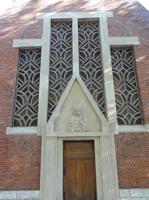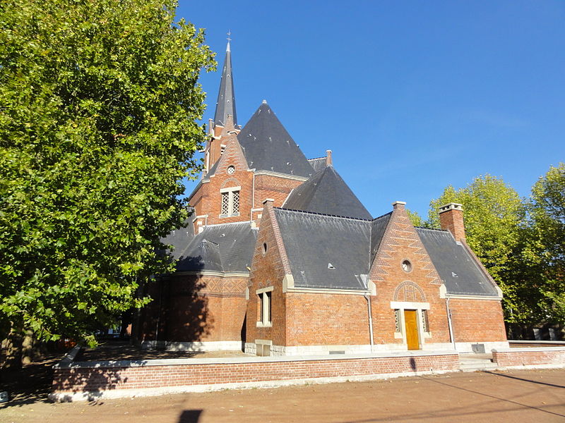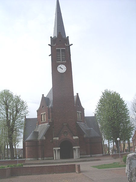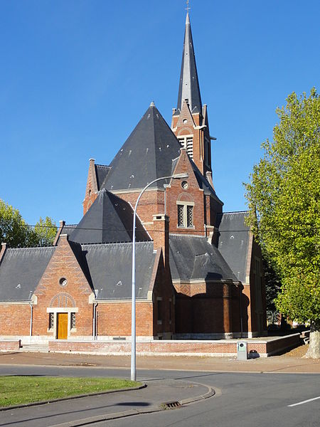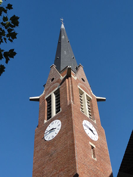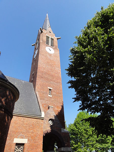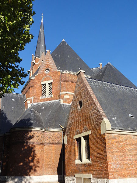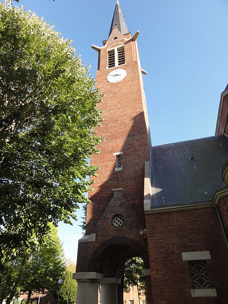 L’église Saint‑Louis de la cité Nouméa, à Rouvroy (Pas‑de‑Calais), est un édifice catholique construit à l’initiative de la Compagnie des Mines de Drocourt lors de la reconstruction d’après la Première Guerre mondiale ; elle fait partie des éléments du site n°48 inscrits au patrimoine mondial de l’Unesco le 30 juin 2012. L’édifice, érigé au printemps 1928 grâce à l’impulsion de Louis Dupont et de Noël Beaugrand, s’inscrit au centre d’un ensemble urbain organisé autour d’un axe principal réunissant écoles et presbytères, tous exécutés en brique de teinte identique par les architectes Charles Duval et Emmanuel Gonse. L’église constitue le seul exemple d’édifice à plan centré réalisé par ces architectes ; son plan rappelle la croix grecque et s’inspire de Sainte‑Sophie de Constantinople. Le clocher carré, porté par deux piliers en béton, se dresse en avant de la façade principale. L’ossature est en béton masqué par un parement de briques, la charpente métallique comportant des pannes en fer. La travée unique de la nef est couverte par une coupole reposant sur trompes intradossées à ressauts et limitée sur quatre côtés par des arcs en plein cintre, dont deux communiquent avec les bras du transept ; le chœur s’achève par une abside à trois pans. Quatre coupoles de colonnes soutenant la voûte centrale donnent accès à quatre absidioles obliques qui abritent les autels secondaires. Les principaux artisans associés au chantier sont Henri Marret pour les fresques, Raymond Couvègnes pour la sculpture, Raymond Subes pour la ferronnerie d’art, Jean Gaudin pour les verrières et l’entrepreneur M. Thibierge de Douai. L’ornementation intérieure repose largement sur des motifs en brique et des décors peints : sous les trompes à ressauts, Henri Marret a figuré en quatre scènes les œuvres sociales de saint Louis dans une dominante bleue, tandis que l’étage supérieur de la coupole présente les Évangélistes dans des tons rouges et bruns, la calotte étant ornée de huit médaillons consacrés à l’Agneau et aux sept dons du Saint‑Esprit. À l’origine, les murs étaient enduits d’un mortier de chaux ocré et les verrières ajoutaient une dominante jaune à l’ensemble ; la frise du chemin de croix et la plupart des fresques ont cependant été recouvertes d’une couche de chaux éteinte, seule subsistant la fresque du chœur dite du Chêne de Vincennes, tandis qu’une partie de la frise du chemin de croix a été retrouvée sous un contreplaqué lors de travaux de rénovation en 2011 et attend une restauration. Les fonts baptismaux ont reçu une nouvelle ornementation vers 1978 du peintre polonais Eugeniusz Mucha, le linteau conservant encore l’inscription latine "QUI HABET AURES AUDIENDI AUDIAT". L’autel en marbre, don de la famille de l’abbé Casimir Grabas, renferme des reliques dont la présence est attestée par un parchemin déposé le 18 septembre 1988 à l’occasion des quarante ans de prêtrise de l’abbé Blanchant ; y figurent notamment des reliques liées à saint Clément, sainte Claire d’Assise, saint François de Sales, saint François d’Assise, sainte Jeanne de Chantal, saint Jean‑Marie Vianney et saint Théophane Vénard. La toiture en ardoise a été révisée en 1991, travaux suivis de la bénédiction de la croix du coq, et la cloche Marie‑Louise a été baptisée le 6 avril 1930 en présence comme parrain de Louis Dupont et comme marraine de Marie‑Louise Beaugrand. La paroisse, d’abord rattachée successivement aux doyennés de Vimy puis de Billy‑Montigny, a été érigée en 1931 sous le nom de Rouvroy‑Nouméa ; la communauté des sœurs de l’Immaculée Conception s’y est installée en 1934. Aujourd’hui l’église dépend du diocèse d’Arras et fait partie de la paroisse Saint‑Joseph‑en‑Haute‑Deûle du doyenné d’Hénin‑Carvin ; la messe dominicale de la communauté française y est célébrée une fois par mois. Les titulaires du service pastoral se sont succédé, côté français, de l’abbé Henri Carière à l’abbé Joseph Wachala, et, côté polonais, depuis l’abbé Bernard Berk jusqu’à l’abbé Joseph Wachala SChr, les noms et dates figurent dans les registres paroissiaux.
