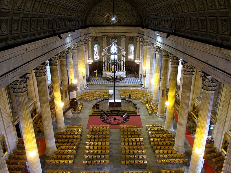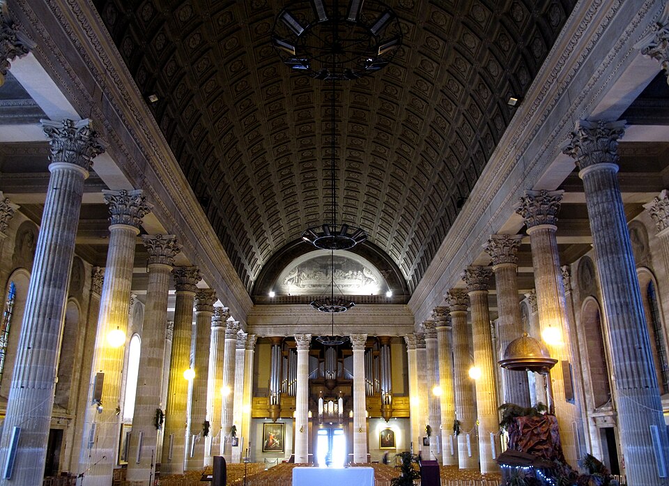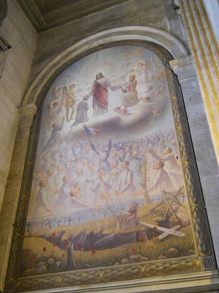Dès 1829 l'édifice a été perçu comme une basilique républicaine d'inspiration antique par son plan rectangulaire, ses grandes proportions, un dépouillement mobilier relatif, la présence de baies à verre blanc et son langage néoclassique s'inspirant des basiliques civiles antiques et des théories d'urbanisme des Lumières. Après 1870 plusieurs éléments prêtent à l'interprétation républicaine ou civique : la répétition du Christ vêtu de bleu, blanc et rouge sur de nombreux vitraux, la présence d'un drapeau français sur le clocher nord, le monument aux morts d'André Astoul, et la représentation de députés et sénateurs aux côtés du clergé sur le vitrail du Sacré-Cœur.