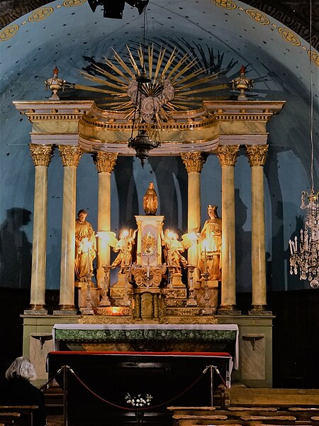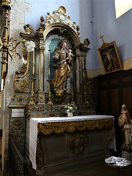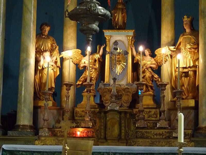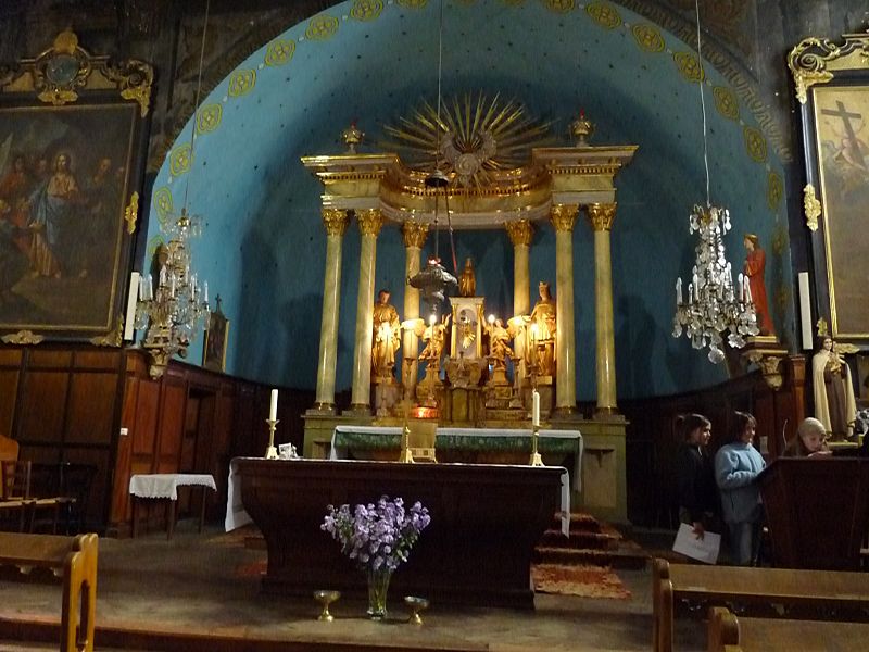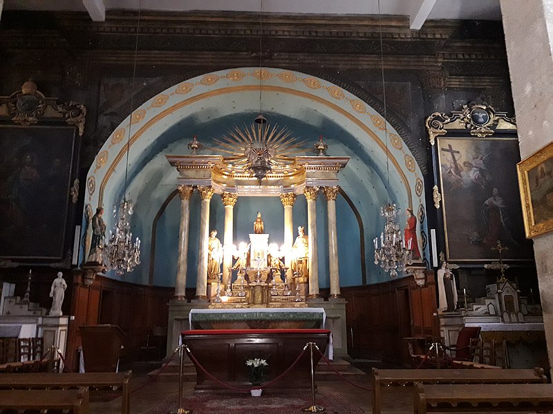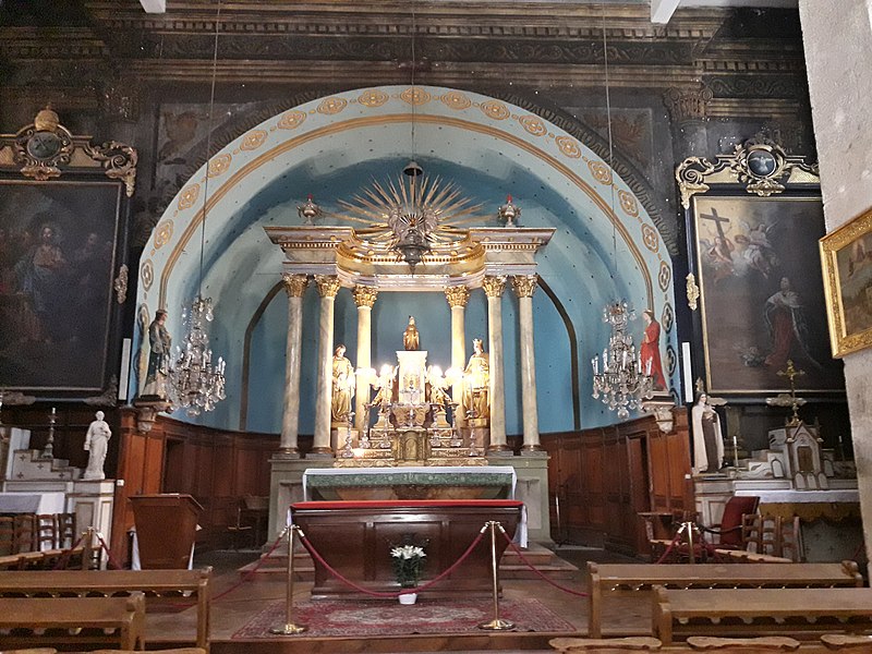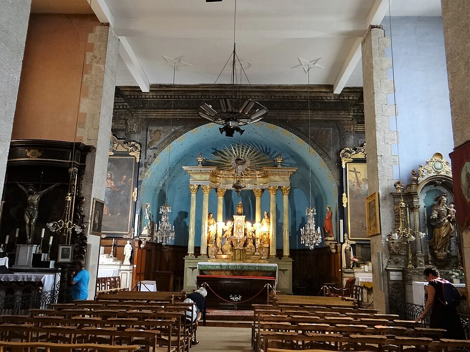 L'intérieur offre un décor assez riche composé de retables, peintures murales et tableaux. Parmi les pièces protégées figurent le retable majeur et les tableaux représentant saint Louis et saint Pierre, inscrits en 2001, ainsi que le retable de saint Jean-Baptiste, classé en 2001, dont la statue de saint Jean-Baptiste, réalisée par le sculpteur Jean Paris en 1749, fait l'objet d'un classement séparé. Le tabernacle en bois doré, avec son gradin et sa contre-table ornés de panneaux en bas-relief représentant la Visitation et l'Annonciation, et le retable du Christ accompagné d'un tableau daté de 1739 ont été classés en 1981. On y conserve également un tableau de la Vierge de Pitié peint par Paul Pezet de Narbonne en 1703, classé en 2015, une statue du Christ en croix du XVIIe siècle classée en 1911, ainsi que deux statues de la Vierge à l'Enfant, assise et debout, classées en 1948. Les vitraux de l'église ont été réalisés par le peintre-verrier Gustave Pierre Dagrant.