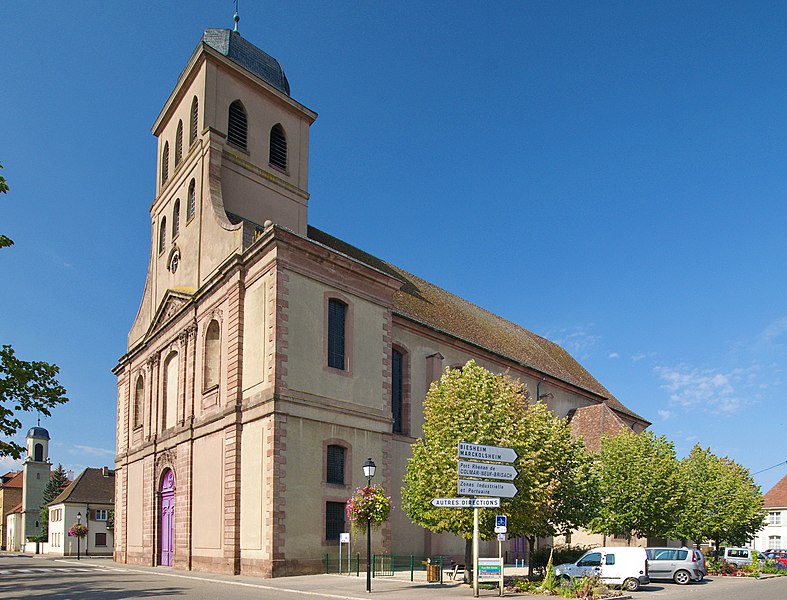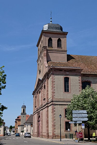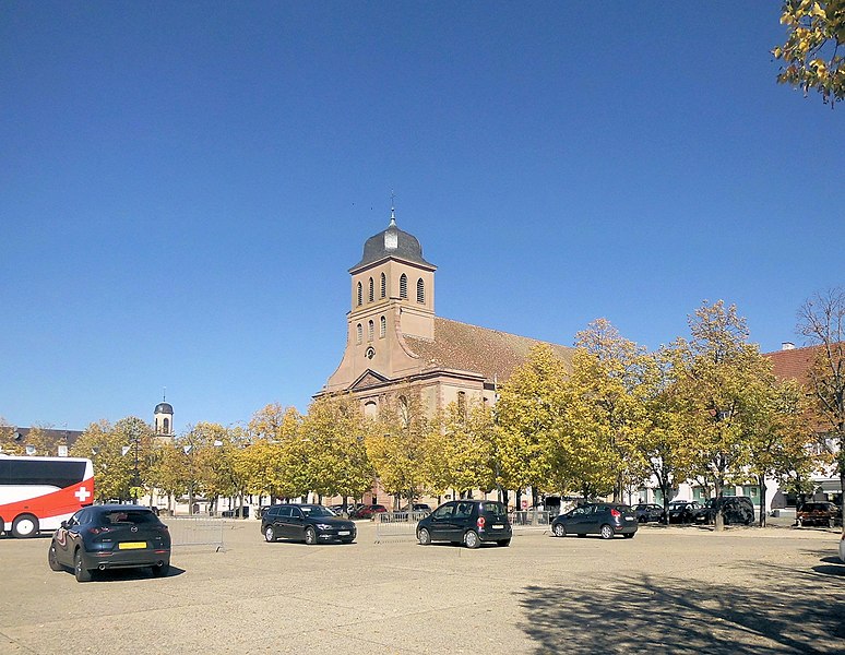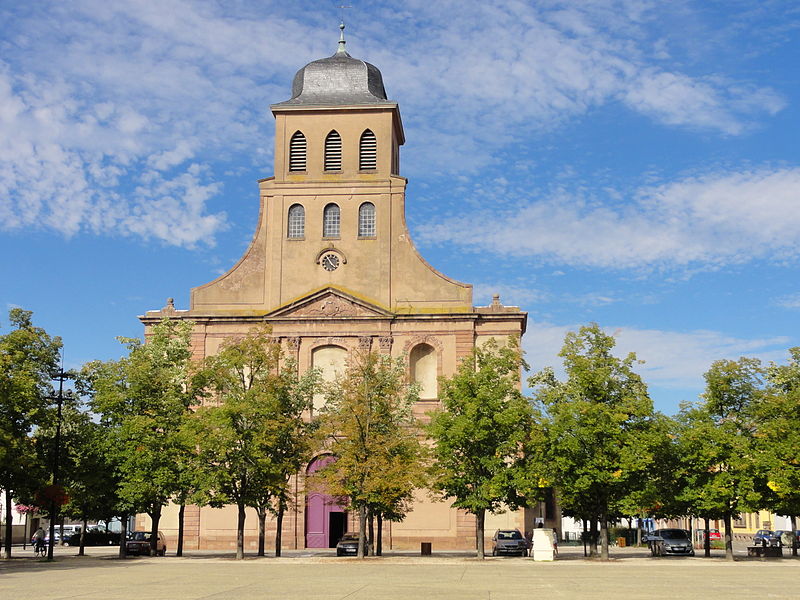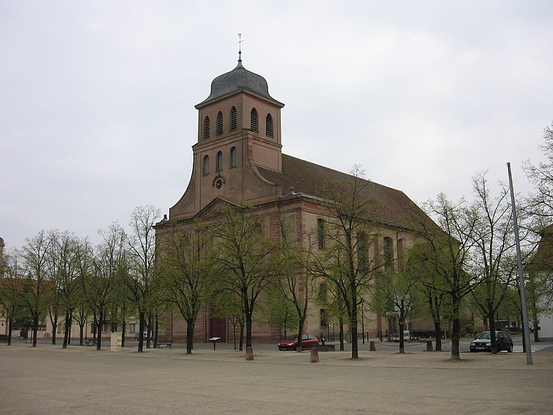L'église catholique Saint-Louis, située au 26 place d'Armes à Neuf-Brisach (Haut-Rhin), est classée au titre des monuments historiques depuis 1939. Les travaux ont été réalisés d'après les plans de l'architecte Chevalier, collaborateur de Massol : ils ont débuté en 1732 et se sont achevés en 1736. L'édifice a été consacré et dédié à Saint Louis, roi de France, le 12 octobre 1777 par l'évêque Gobel, suffragant pour la partie française du prince-évêque de Bâle. Entièrement incendiée lors des bombardements des 5 et 6 février 1945, l'église a ensuite fait l'objet d'une restauration à l'identique conduite par l'architecte Bertrand Monnet, après trente années de travaux.