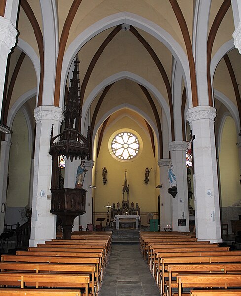 L'église Saint-Louis est une reconstruction de la première moitié du XVIIe siècle, élevée sur les fondations d'une collégiale attestée depuis 1306. Elle a été restaurée à partir de 1875 dans un style néogothique, visant à lui rendre la cohérence d'une église-halle voûtée de croisées d'ogives. L'édifice conserve par ailleurs des éléments architecturaux de différentes époques qui témoignent de l'histoire de la cité et des vicissitudes traversées durant les guerres de Religion.