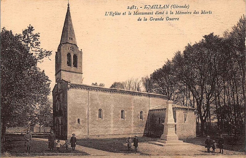 L'église Saint‑Louis est une église catholique située dans la commune de Roaillan, en Gironde. Elle occupe une position centrale dans le bourg, à l'intersection des routes départementales D125 et D222. Sa construction primitive remonte au XVe siècle. On y distingue une abside semi‑circulaire et des absidioles sud de style roman qui ont été conservées. La façade et le clocher ont été rebâtis au XIXe siècle. L'abside et l'absidiole sud ont été inscrites au titre des monuments historiques par arrêté du 24 décembre 1925. Des photographies et des informations figurent sur Wikimedia Commons ainsi que dans les bases et sites dédiés au patrimoine religieux et architectural (Mérimée, Clochers de France, Observatoire du patrimoine religieux) et sur les sites de la commune et du tourisme local.