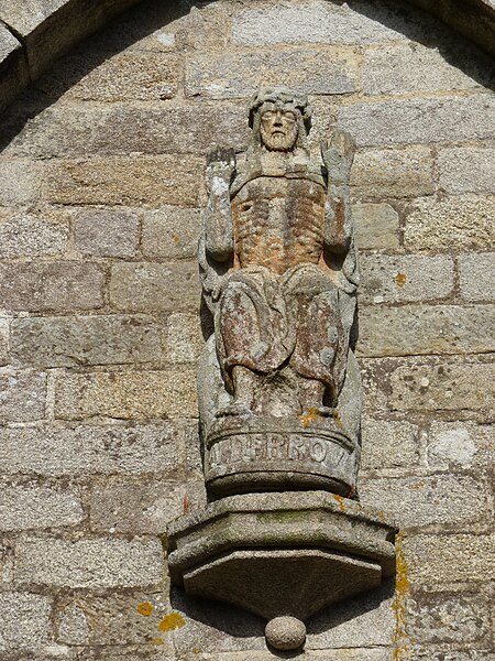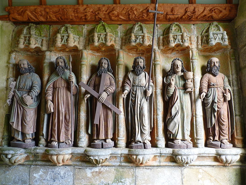 Le porche, daté du XVIe siècle, est orné de statues représentant les douze apôtres.