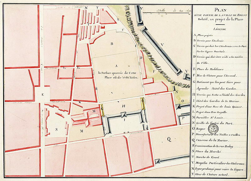 L'église primitive, commencée en 1686 et consacrée en 1702 mais achevée seulement en 1785, fut conduite successivement par Siméon Garangeau, Amédée François Frézier et Pierre-Joachim Besnard et remplaça la vieille église des Sept-Saints. Frézier réalisa le baldaquin du maître-autel, achevé en 1758 et placé au centre du chœur, qu'il soutint par quatre colonnes monolithes de marbre cipolin provenant des ruines de Leptis Magna; Louis XIV en avait reçu un lot de Libye en 1689 et quatre colonnes non utilisées à Versailles furent obtenues par Frézier. Ce baldaquin, œuvre de la maturité de Frézier, fut vivement loué pour son appareil et son esthétique, et l'ancien maître-autel conservait le tableau Le Martyre des Maccabées, illustrant les confusions légendaires autour des récits des « Sept Saints ». L'ancienne église fut gravement endommagée par les bombardements et par les représailles de l'occupant durant l'été 1944, puis rasée lors de la reconstruction.