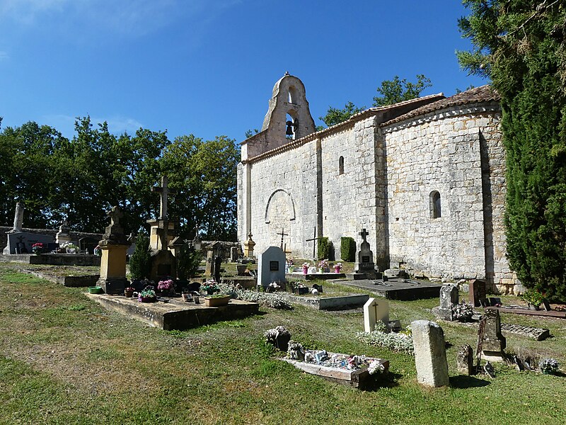 L'église dépendait de l'archiprêtré de Capdrot, auquel elle fut unie par bulle en 1317. L'édifice se compose d'une nef d'une travée, d'une chapelle latérale au nord et d'un chœur semi-circulaire. La nef a été revoûtée d'un lambris plafonné. Au XVIIe siècle, le mur nord a été percé d'un arc en plein cintre reposant sur des impostes moulurées, ouvrant sur la chapelle latérale. L'abside présente un mur nu bordé d'une banquette en pierre, et une corniche marque le départ de la voûte en cul-de-four. Sur la face sud subsiste ce qui pourrait être l'ancien portail. Sur la façade ouest, élevée au XVIIe siècle, se dresse un clocher-mur à courbe et contre-courbe ajouré de deux baies campanaires.