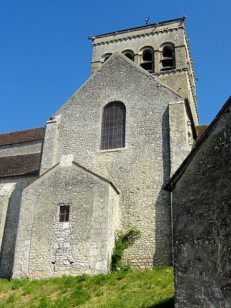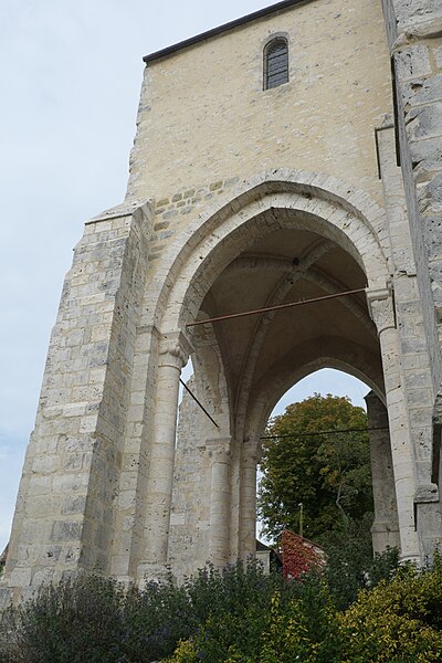 L'église Saint-Loup est l'église paroissiale de Saint-Loup-de-Naud, en Seine-et-Marne, dédiée à saint Loup, évêque de Sens au VIIe siècle. Elle était autrefois l'église du prieuré bénédictin Saint-Loup, signalé comme disparu en 1560 à la suite des guerres de religion et pillé par les protestants en 1567. Un domaine se trouvait déjà au Xe siècle sur le site : une chapelle consacrée à saint Loup qui, vers 980, fut donnée par l'archevêque de Sens aux moines de l'abbaye Saint-Pierre-le-Vif, qui y fondèrent un prieuré. La construction de l'église commença dans la seconde moitié du XIe siècle avec l'élévation du chœur, du transept et des deux premières travées de la nef. Vers 1160, l'archevêque Hugues de Toucy offrit au prieuré une relique de saint Loup, et, probablement grâce au comte de Champagne Henri le Libéral, la nef fut alors prolongée de quatre travées et un portail occidental surmonté d'une tour fut édifié dans un style de transition vers le gothique. Au XIIe siècle se forma autour du prieuré un village desservi par l'église, tandis que le prieuré lui-même connut des revers : il fut victime de bandes anglaises pendant la guerre de Cent Ans, abandonné par ses moines et mis en commende. Le prieuré déclina ensuite et fut dissous à la Révolution française. L'édifice fait l'objet d'un classement au titre des monuments historiques depuis 1846. Des premiers travaux de restauration furent entrepris après 1871. En août 2011 un arrêté municipal de péril entraîna la fermeture temporaire de l'église, qui rouvrit au public en décembre 2013. En 2016, des collectes de financement, notamment avec l'aide de la Fondation du patrimoine, ont été engagées pour l'assainissement, la restauration et la protection du portail. L'édifice, implanté au sommet du coteau dominant la vallée du Dragon et le centre du village, présente un aspect sobre et austère, souligné par un clocher élevé au‑dessus de la croisée du transept. L'abside est percée de trois fenêtres dépourvues d'ornementation. Le porche abrite un portail daté d'environ 1160, dont la décoration sculptée est particulièrement remarquable, en particulier les statues‑colonnes qui témoignent des premiers développements du gothique. À l'intérieur, la nef et son collatéral sud, la voûte de l'abside et la base des colonnes portent les traces des diverses campagnes de construction et de restauration. Dans le transept sud est exposé un tableau de Charles‑Nicolas Lambinet, daté de 1775, représentant Clotaire II implorant le pardon de saint Loup. L'église a pu inspirer les églises de Balbec et de Saint‑André‑des‑Champs dans À la recherche du temps perdu ; Marcel Proust, qui serait venu plusieurs fois à Saint‑Loup‑de‑Naud, évoque l'église de Balbec comme partiellement romane, froide par nature mais digne d'une visite pour qui se trouve dans la région.