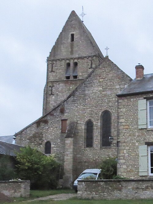Église à deux nefs, pourvue d'un chevet carré. Des chapiteaux datent du XIIIe siècle. Le clocher et une absidiole relèvent du roman primitif ; l'absidiole a cependant été remaniée à l'extérieur. La base du clocher appartient au XIe siècle, tandis que l'édifice est daté du XIVe siècle. À l'origine, il s'agissait d'une chapelle romane dépendant du château et adossée à une tour carrée.