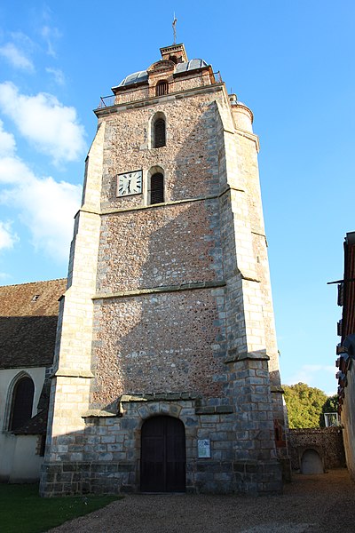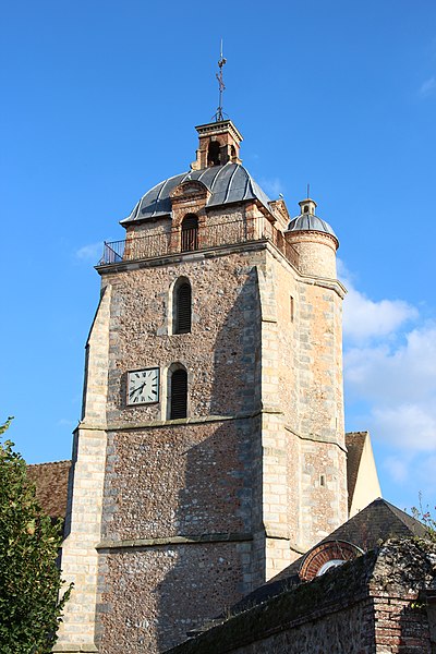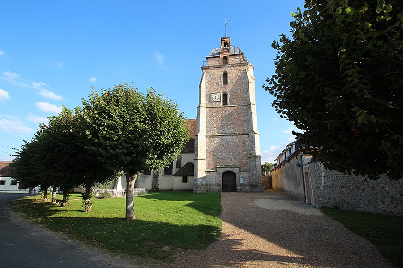 L'église paroissiale Saint-Lubin est un édifice à vaisseau unique, typique du canton de Nogent-le-Roi. Ses décors appartiennent à l'art gothique tardif. Elle a été construite ou reconstruite à la fin du XVe siècle grâce aux dons des familles de Trie et de Pillavoine. La tour-clocher, coiffée d'une coupole à quatre pans, présente des larmiers qui rythment ses étages ; une tourelle d'escalier hexagonale lui est accolée pour l'accès. À l'est, le chœur est bordé au nord par une construction basse qui contourne l'abside semi-circulaire et conduit à la sacristie. Au sud, une chapelle ouvrant sur le chœur, destinée aux châtelains, a été édifiée au XIXe siècle par la famille de Boquestant et communiquait directement avec les communs du château.