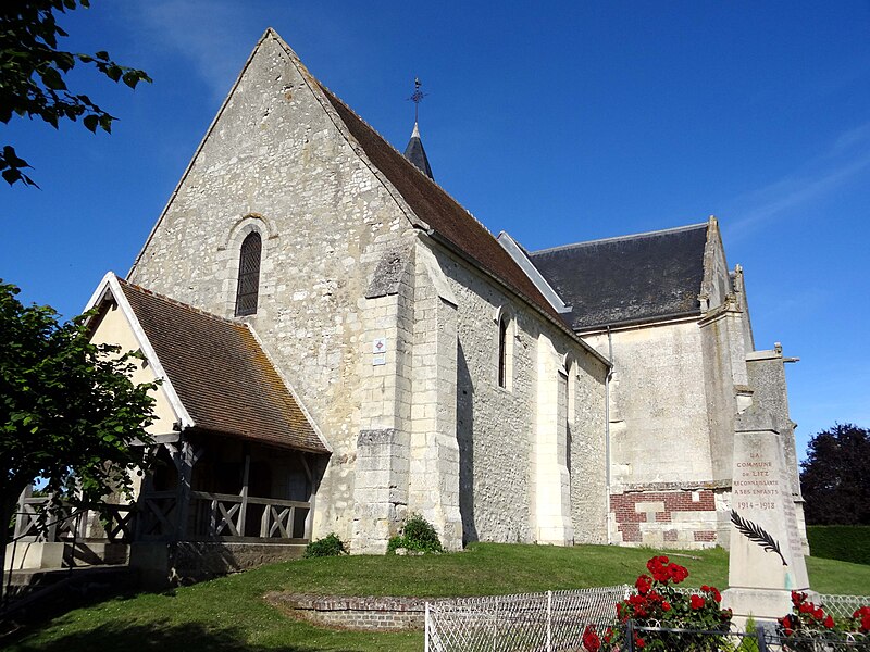 L’église Saint‑Lucien de Litz, dans l’Oise (Hauts‑de‑France), est une paroissiale catholique inscrite aux monuments historiques le 14 octobre 2002. Placée sous le vocable de saint Lucien, elle présente un plan en croix avec un double transept et une abside à cinq pans, résultant d’une importante campagne de reconstruction et de restauration datée de la fin du Moyen Âge et du début de la Renaissance. La nef unique, qui n’a jamais été voûtée et conserve une fausse voûte en berceau en bois plâtré, relève d’une tradition romane et porte des traces de décor peint ; son portail, aujourd’hui masqué par un porche moderne, est postérieur au reste de la nef et peut remonter à la fin du XIIe–début du XIIIe siècle. La base du clocher, aux murs en pierres et petits moellons, paraît plus ancienne et a été réutilisée lors de l’édification du vaste chœur, achevé selon Louis Graves en 1542, période qui illustre la transition du gothique flamboyant vers des motifs renaissants. Le beffroi est une construction en charpente recouverte d’ardoise et couronnée par une flèche octogonale ; une tourelle d’escalier moderne en brique occupe l’angle nord‑est. À l’intérieur, la composition voûtée du chœur et des croisillons, ainsi que le profil complexe des arcs‑doubleaux et des formerets, témoignent d’un maniement original du style flamboyant, tandis que quelques éléments — clés de voûte, culots et une piscine liturgique — relèvent de l’influence Renaissance. L’abside se distingue par des baies en arc brisé dont les tympans reçoivent un remplage flamboyant à deux ou trois arcatures trilobées, et par l’absence volontaire de meneaux verticaux afin de maximiser la surface destinée aux verrières. Extérieurement, les contreforts et la modénature du croisillon sud portent des ornements d’inspiration renaissante, notamment dans les gâbles et les chaperons. L’église conserve un mobilier très complet : une poutre de gloire polychrome, de nombreuses statues de facture populaire antérieures à la Révolution, des boiseries d’abside restaurées et deux retables architecturés remarquables, dont un retable baroque de 1680 provenant du prieuré de Wariville. Trois verrières figurées du XIXe siècle, signées J.E. Roussel de Beauvais, éclairent l’abside, et plusieurs objets liturgiques et boiseries des XVIe au XVIIIe siècles sont protégés au titre des objets. Implantée à l’ouest du village, entre la rue de la Mairie et la rue de l’Église et bordée par l’ancien cimetière, l’église est assez bien dégagée côté façade mais le chevet est partiellement masqué par les clôtures voisines. Affiliée à la paroisse Saint‑Louis de Bresles, elle accueille des messes dominicales anticipées environ tous les deux mois.