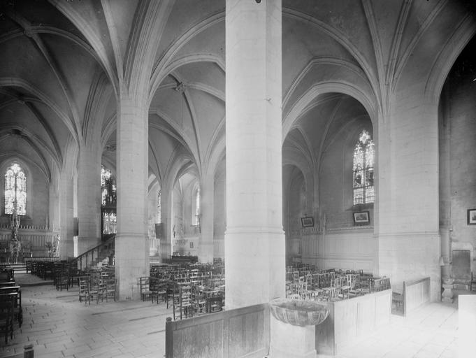 La nef est reconstruite avec quatre travées voûtées en arêtes.