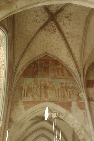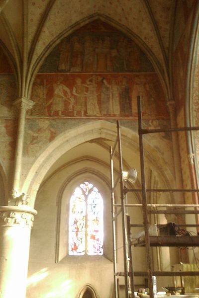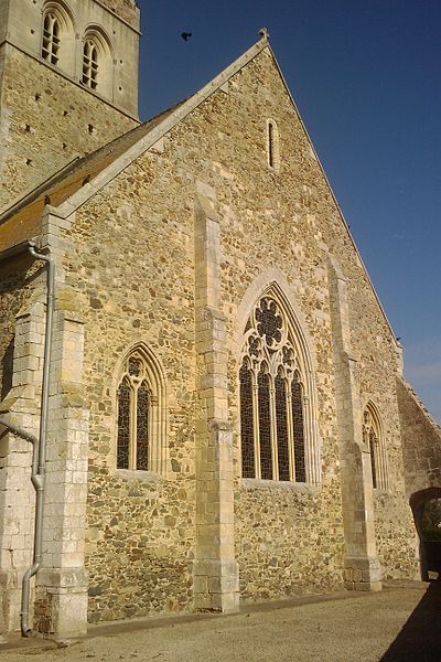 L'église Saint-Manvieu de Marchésieux, située dans le bourg de Marchésieux (Manche, Normandie), dépendait du prieuré fondé en 1070 par Robert d'Aubigny et donné à l'abbaye bénédictine de Cormery. Son histoire est mal connue ; l'archevêque Eudes Rigaud visita le prieuré en 1256, y trouva trois moines ne respectant pas les règles et y fit une nouvelle visite en 1266. De l'édifice du XIe siècle rien ne subsiste : la croisée du transept, la partie la plus ancienne, date de la seconde moitié du XIIe siècle. La nef et ses collatéraux, de style gothique, ont été élevés vers le milieu du XIIIe siècle, la construction ayant commencé par la première travée de la nef vers la croisée ; le collatéral sud fut le dernier construit. Les piles de la croisée furent remaniées au troisième tiers du XIIIe siècle lors de l'édification des croisillons, et le chœur date de la fin du XIIIe siècle ou du début du XIVe. Le clocher, l'agrandissement de certaines fenêtres de la nef, l'achèvement du portail occidental et le porche relèvent de la même époque. L'édifice a connu des états de dégradation aux XVIIe et XVIIIe siècles, puis des interventions au XXe siècle, notamment l'abaissement du sol en 1914, un ravalement général en 1918 et la réfection des bases des colonnettes et des fenêtres des croisillons en 1925. La Seconde Guerre mondiale n'a pas causé de destruction générale, mais les voûtes de la première travée du chœur et de la travée adjacente du collatéral nord furent perforées et la toiture ainsi que la face orientale du clocher éventrées. Au cours des travaux de reconstruction après la guerre furent mises au jour des peintures murales du début du XIVe siècle qui décorent les tympans surmontant les grandes arcades et les voûtains du chœur. Ces peintures comprennent une dizaine de tableaux représentant notamment l'enfance du Christ, des légendes de saint Manvieu et de saint Jouvin, la Cène, des anges, des apôtres et un Christ en majesté entouré des évangélistes sur le mur du chevet. Des clés de voûte sculptées, attribuées au XVe siècle et d'influence angevine et saumuroise, illustrent l'Annonciation, la Nativité et l'Adoration des mages, tandis que des statuettes en nervures figurent trois moines donateurs. L'édifice conserve également un relief du XVIe siècle représentant le martyre de sainte Apolline. L'architecture associe éléments romans et gothiques : les piles de la croisée conservent un caractère roman du XIIe siècle, le transept appartient au troisième tiers du XIIIe siècle et le chevet à la fin du XIIIe siècle. L'église est totalement protégée au titre des monuments historiques : elle a été inscrite par arrêté le 14 octobre 1946 et les peintures murales du XIVe siècle, dont certaines représentent le massacre des Innocents et la Présentation au Temple, ont été classées par arrêté du 15 septembre 1953. Le mobilier comprend un aigle-lutrin du XVIIIe siècle classé aux monuments historiques, des fonts baptismaux du XVIIe siècle, des statues de saint Manvieu (XVIIIe siècle) et de sainte Marguerite (XVIe siècle), ainsi qu'une verrière du XXe siècle réalisée par Jean Barillot.