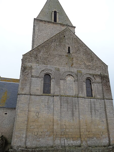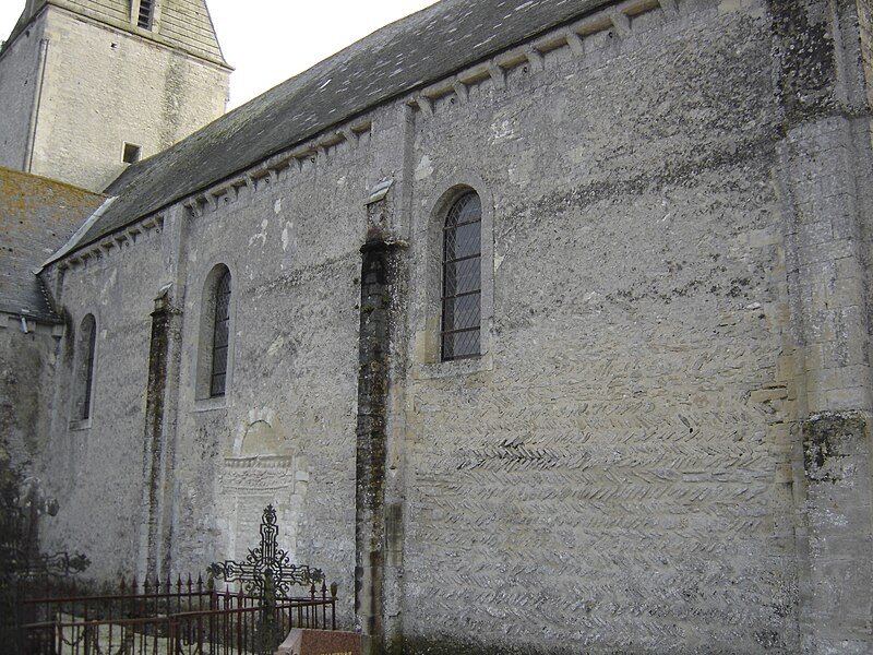 Selon Arcisse de Caumont, l'architecture est essentiellement romane ; la façade présente un appareillage soigné, des arcades aveugles de part et d'autre du portail et des arcades dans ses parties hautes, ainsi que des contreforts. En contraste, les murs de la nef utilisent l'opus spicatum. À la base de la tour, un arc ogival est décoré de motifs en zigzag et des modillons ont été déplacés à l'intérieur de l'édifice. Les deux chapelles formant le transept s'ouvrent par des ogives sur l'église et le chœur est couvert d'une voûte datée de la seconde moitié du XIIe siècle.