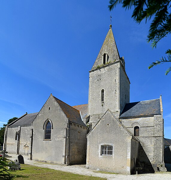 Les vues conservées et documentées montrent la façade nord et sud, une vue générale depuis le nord‑ouest, la représentation de la Cène sur le linteau d'une ancienne porte murée de la façade nord, la nef, le chœur et le transept, le maître-retable et la statue de saint Manvieu. La monographie d'Arcisse de Caumont, Statistique monumentale du Calvados (t. 3, p. 557‑561), est une des principales sources historiques mentionnées pour cet édifice.