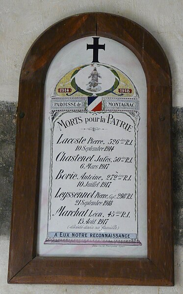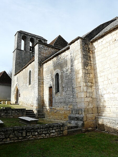 L'église Saint-Marc, église catholique de style roman située au cœur du village de Montagnac-d'Auberoche en Périgord central (Dordogne), conserve pour la partie la plus ancienne des éléments du XIIe siècle. L'édifice présente un avant-choeur carré suivi d'un chœur achevé par une abside semi‑circulaire à l'intérieur et polygonale à l'extérieur. L'avant-choeur est voûté d'un berceau plein cintre, vestige qui pourrait avoir remplacé une coupole disparue ; des contreforts massifs l'épaulent, car un clocher s'élevait autrefois sur ce carré. La nef a été relevée à une date postérieure, un peu plus étroite que dans l'état primitif, et le clocher‑mur qui la surmonte comporte au second niveau trois baies campanaires ; une seule cloche subsiste. Le mur goutterot sud de la nef, daté de la fin du XVe siècle, s'ouvre par un portail en tiers‑point sous trois voussures munies de moulures prismatiques s'entrecroisant, l'archivolte formant un retour. L'édifice est orienté est‑nord‑est / ouest‑sud‑ouest, le portail occidental s'insérant sous le clocher‑peigne. À l'intérieur, une litre funéraire armoriée ceint la nef et l'on peut y voir quelques peintures murales. Côté sud, six pierres tombales sont alignées contre l'élévation extérieure. L'église fait l'objet d'une protection au titre des monuments historiques et a été inscrite le 11 mai 1981. Parmi les éléments remarquables figurent le portail, le clocher‑mur, la nef, le chœur et l'abside à l'extérieur polygonale, ainsi que la litre funéraire et une peinture représentant le Stabat Mater.