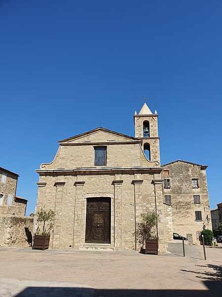 L'église Saint-Marcel, située à Aléria en Haute-Corse, a été bâtie au XVe siècle, vraisemblablement sur l'emplacement d'une première cathédrale d'époque tardive mentionnée par la tradition et parfois attribuée aux IVe–Ve siècles. L'édifice a fait l'objet de remaniements importants du XVIIe au XXe siècle et, au fil des reconstructions, des pierres de la ville romaine voisine ont été réemployées. La façade antérieure s'organise en trois registres séparés par de fortes corniches, surmontés d'un fronton triangulaire ; elle est rythmée par des pilastres plats et percée d'une fenêtre haute et d'une porte à deux vantaux. Le chevet présente un profil plat. À l'intérieur, la nef centrale s'ouvre par des arcades sur deux collatéraux étroits ; une simple balustrade sépare la nef d'un chœur peu profond. L'ensemble de l'édifice est couvert par une toiture à pyramidon. Le clocher, élevé en 1886, comporte une chambre des cloches ajourée par des baies. L'église Saint-Marcel est inscrite au titre des Monuments historiques par arrêté du 15 janvier 1987. Elle conserve un tableau figurant Saint Marcel entre deux martyrs, huile sur toile datée du XVIIe siècle, classée Monument historique par arrêté du 23 octobre 1989.