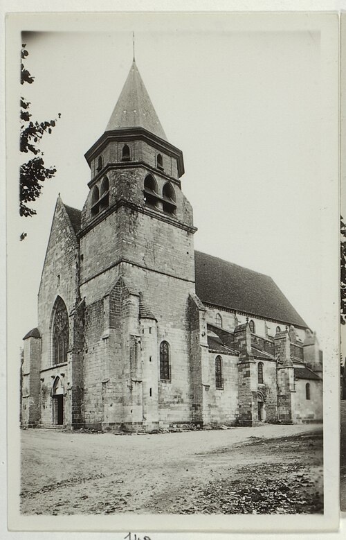 Le plan de l'église comprend une nef de cinq travées sans transept, un chevet polygonal à sept pans, deux collatéraux fermés par des murs droits et un clocher implanté sur la première travée occidentale du bas-côté sud. Une chapelle rectangulaire et la sacristie datent du XVIe siècle. La façade, épaulée par quatre contreforts, présente une porte modeste à archivolte en tiers-point, un tympan trilobé et des colonnettes à collerettes de feuilles, tandis qu'une grande fenêtre flamboyante éclaire le haut du pignon ; des corbeaux témoignent de l'existence d'un porche en charpente anciennement en place. Les façades latérales sont renforcées par des arcs-boutants à faible pente et ouvragées de fenêtres en tiers-point étroites, et le chevet est appuyé par six contreforts et percé de deux niveaux de baies s'ornant de colonnettes et de moulures. Le clocher, dont le soubassement est ancien, est renforcé par des contreforts et coiffé d'une pyramide en charpente ; son architecture extérieure évoque davantage les silhouettes romanes bourguignonnes que les grandes basiliques gothiques du domaine royal.