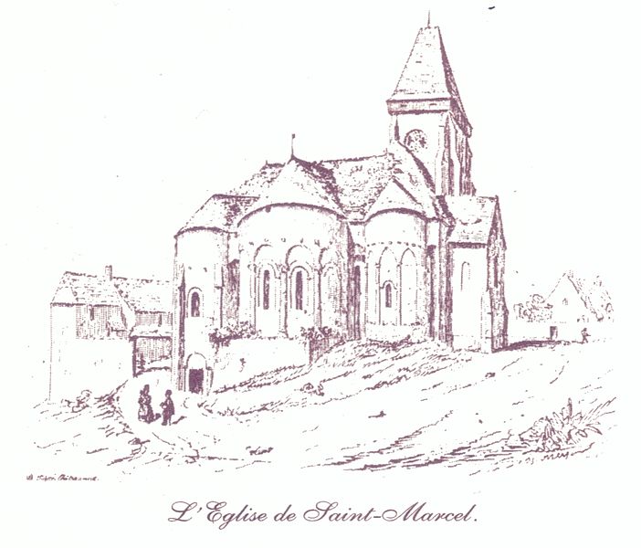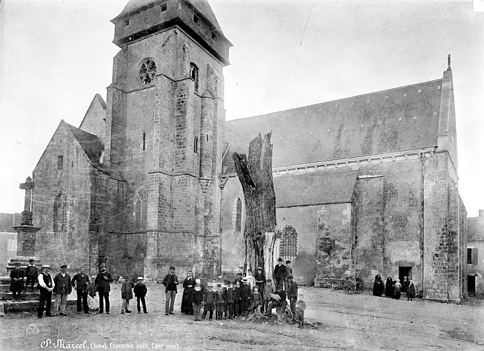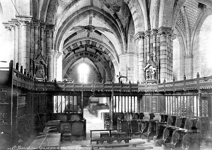 L'église Saint-Marcel de Saint-Marcel (Indre, Centre-Val de Loire) est une église catholique relevant de l'archidiocèse de Bourges, du doyenné du Val de Creuse et de la paroisse d'Argenton-sur-Creuse. Elle faisait partie d'un prieuré dépendant de l'abbaye Saint-Gildas de Châteauroux. L'édifice actuel, construit entre les XIIe et XVIe siècles, repose sur une crypte romano-byzantine du VIIIe siècle et a été classé monument historique en 1875. Située dans la région naturelle du Boischaut Sud, au sud du département de l'Indre, l'église comprend une nef, un transept et trois chapelles absidiales voûtées en cul-de-four ; une crypte se trouve sous la chapelle de droite. Les parties successives de la construction incluent l'abside, la première travée du transept et le grand portail en plein cintre roman des XIe-XIIe siècles, de style de transition, ainsi qu'un clocher-beffroi ogival fleuri des XVe-XVIe siècles. À l'intérieur, on remarque des chapiteaux sculptés et un chœur parfaitement conservé doté de trente et une stalles en bois exécutées entre 1584 et 1592. Un crucifix du XVIIe siècle se présente au-dessus des stalles. Au-dessus de la porte latérale d'entrée figure une fresque du XVIe siècle représentant Notre-Dame de Pitié, aux teintes bleu d'azur, vert émeraude, ocre rouge et ton chair. Des vitraux des années 1920, réalisés par Louis Balmet, représentent notamment les saints Anastase, Marcel, Laurent et Étienne, ainsi que les saintes Catherine et Madeleine. Le mobilier comprend aussi une chaire, la chapelle absidiale et divers détails sculptés sur le mur nord de la nef. Depuis juin 2011, l'église abrite la grande toile de 1842 Le martyre de Saint Polycarpe, de Paul Chenavard (1807-1895), mesurant 6,60 m sur 4,30 m et auparavant conservée à l'église Saint-Étienne d'Argenton-sur-Creuse depuis 1877. Le trésor réunit une châsse en cuivre ornée d'émaux limousins du XIIIe siècle (1220-1240) inscrite aux monuments historiques en 1897, une châsse en bois du XVe siècle, ainsi que plusieurs reliquaires liés à saint Marcel : un buste-reliquaire du XIVe siècle à face d'argent et éléments de cuivre doré ornés de pierres de couleur, un second chef en bois stuqué recouvert des plaques d'argent du premier, et un bras-reliquaire du XIVe siècle en argent et cuivre doré orné de pierres et d'un bracelet d'argent contenant une intaille gallo-romaine. Le trésor comprend enfin deux croix de procession du XIVe siècle, l'une en bois recouverte de lames d'argent, l'autre en cuivre doré.