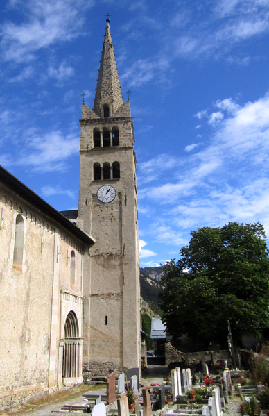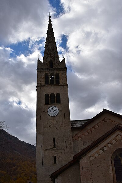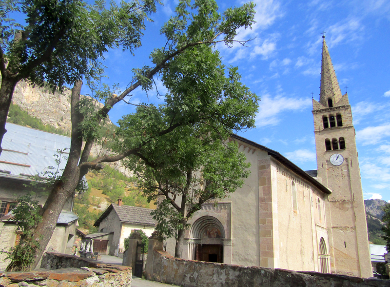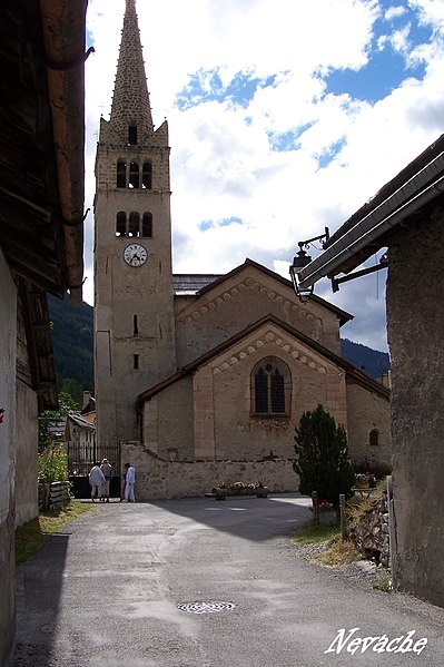 L'église Saint-Marcellin de Névache, située dans la commune de Névache (Hautes-Alpes, Provence-Alpes-Côte d'Azur), était au XIIe siècle placée sous le vocable de Saint-Pélage. La tradition érudite locale affirme qu'elle occupe l'emplacement d'un ancien château fort et que la tour du XIe siècle de ce château a servi de base au clocher. Plusieurs inscriptions datées ornent l'édifice : 1490 sur la porte sud, 1498 sur les vantaux de la porte occidentale et 1537 sur le lambris de la nef. Elle a été consacrée en 1532. La date de 1769 figurant sur un chapiteau du XVe siècle rappelle une restauration. Des tirants en bois posés au XVIIe siècle ont été complétés par des tirants en fer au début du XXe siècle. Jusqu'au XIXe siècle, le chœur comportait un vitrail du XVe siècle représentant le Christ en croix entre la Vierge et saint Jean évangéliste, avec aux pieds les blasons de France et du Dauphiné entourés des cordons de l'Ordre de Saint-Michel ; ce vitrail a été remplacé par les verrières actuelles par décision du prêtre titulaire de la paroisse. L'édifice est classé au titre des monuments historiques en 1914. Parmi les éléments architecturaux remarquables figurent le clocher, la porte en bois sculptée, le portail, la voûte et l'intérieur de la nef.