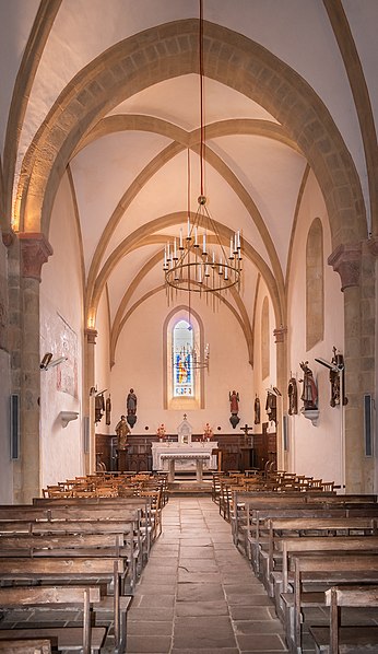 L'église Saint-Martial est située à Arnac-la-Poste, en Haute-Vienne. Elle est dédiée à Martial de Limoges, premier évêque de la ville. L'édifice remonte au XIIe siècle et a fait l'objet de remaniements aux XIIIe et XIVe siècles. Il se compose d'une nef unique de quatre travées égales — trois datées du XIIIe siècle et une du XIVe — à laquelle s'ajoute une cinquième travée en partie occupée par les bases du clocher, datées de la fin du XIIe et du début du XIIIe siècle. Le portail d'entrée, placé sur la façade sud, appartient au XIIIe siècle. Les murs, ainsi que les arcs diagonaux, doubleaux et formerets, sont construits en granit bleu local ; les remplissages des voûtes sont en blocage de maçonnerie enduit de mortier de chaux. L'église a été fortifiée au XIVe siècle : on note des échauguettes cylindriques crénelées percées d'archères et des contreforts, et elle était entourée d'une muraille dont subsiste une tour carrée dotée de créneaux et de mâchicoulis. À la même période, la dernière travée du chœur a été ajoutée. L'intérieur conserve un reliquaire émaillé datant du XIIIe siècle. L'édifice a été inscrit au titre des monuments historiques le 25 septembre 1925.