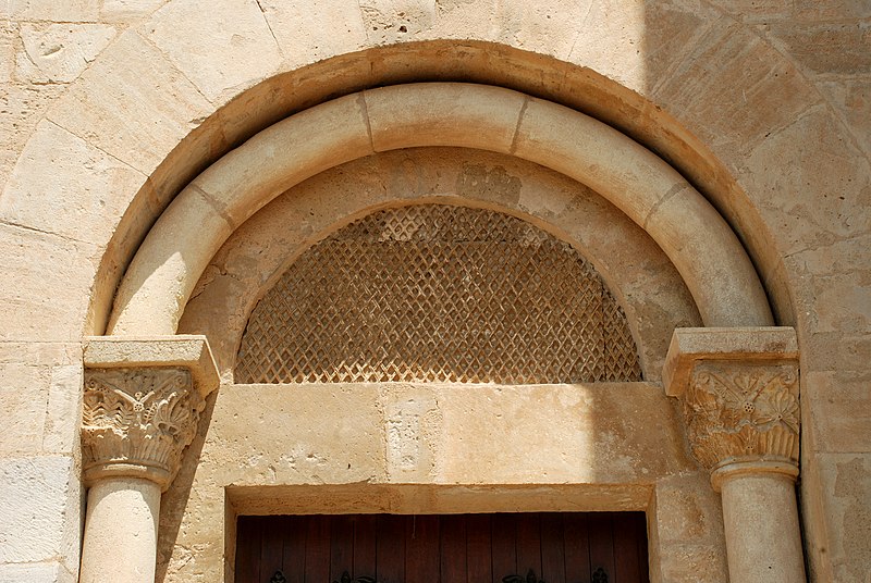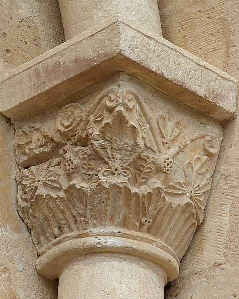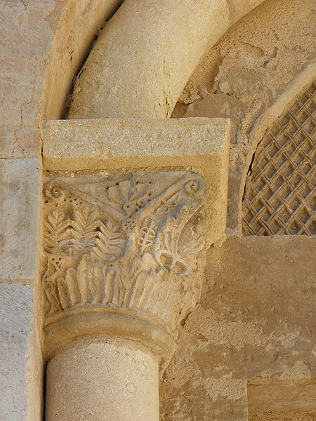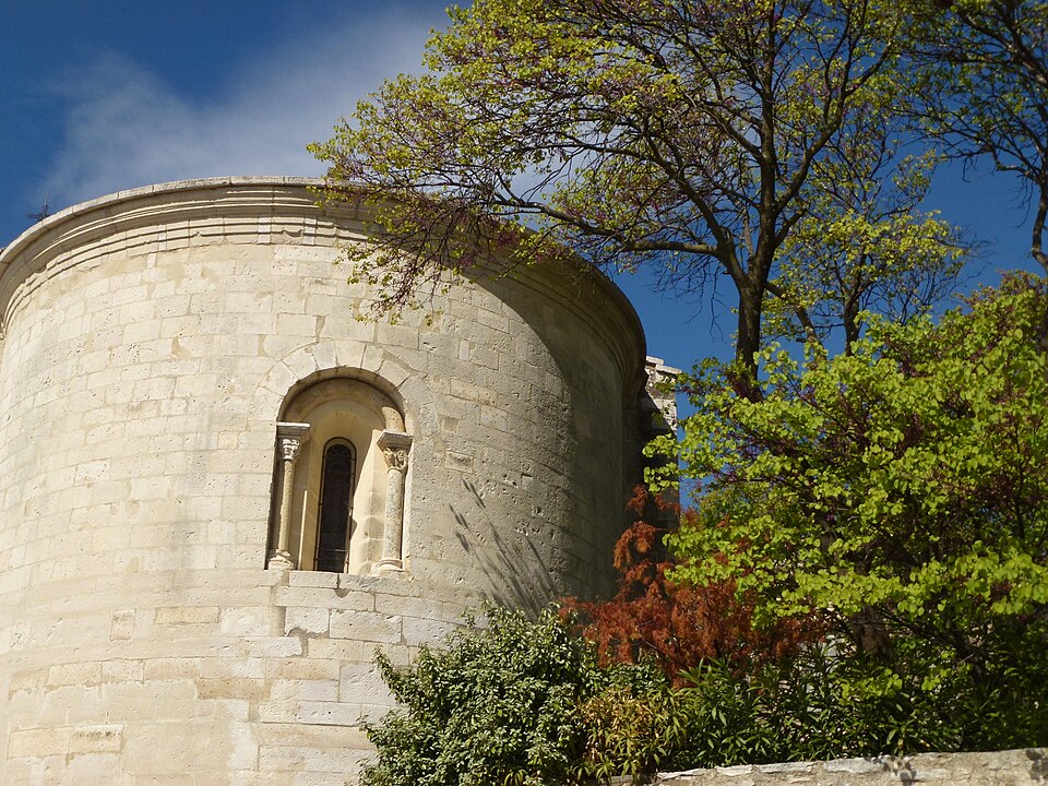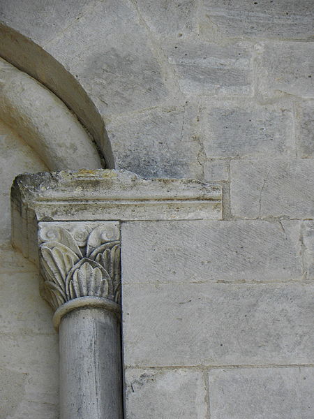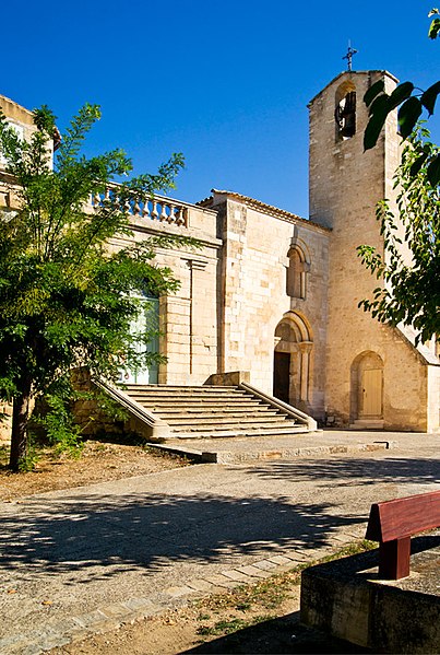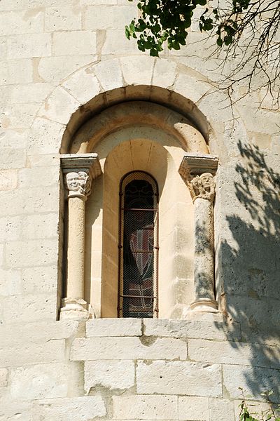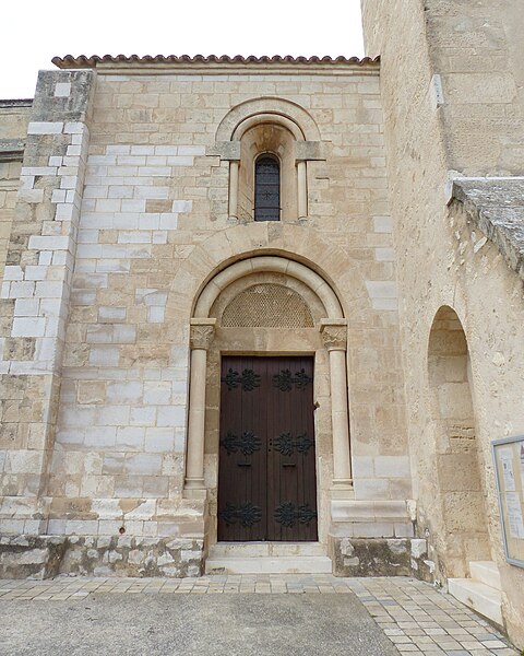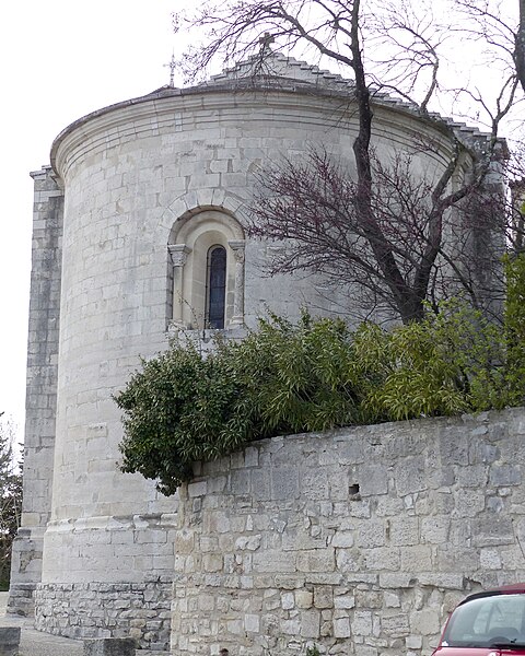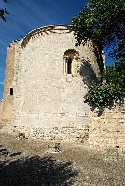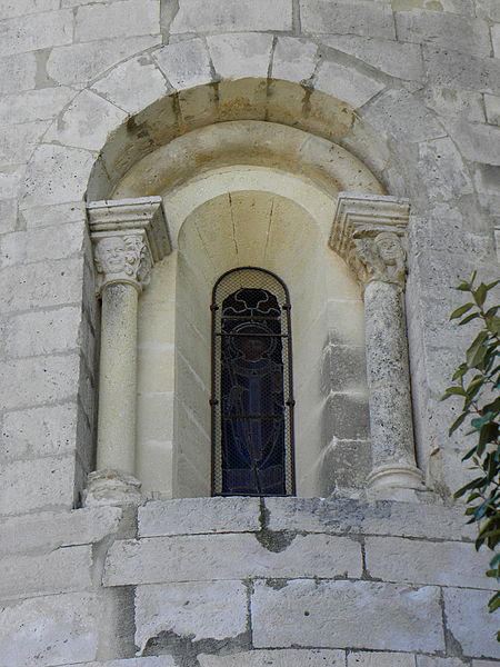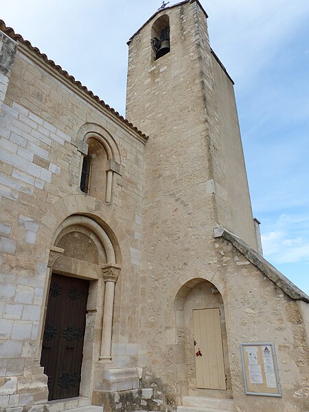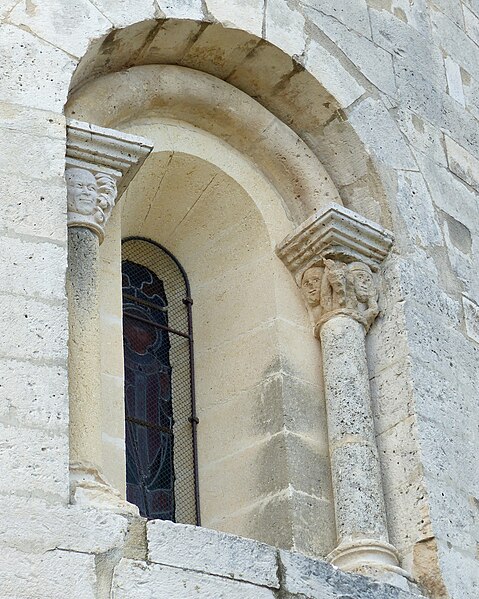 L'église paroissiale Saint‑Martial d'Assas, dans l'Hérault (région Occitanie), est l'ancienne chapelle castrale et présente un plan rectangulaire allongé orienté, avec une nef unique de trois travées et une abside semi‑circulaire. L'essentiel du volume et du décor romans (XIIe‑XIIIe siècles) est conservé, mais le voûtement d'origine a disparu. L'édifice apparaît sous le nom d'Arsaz dès 1129 et a été construit au XIIe siècle, avec des remaniements aux XIIIe, XVIIe et XIXe siècles. À l'origine accolée au château féodal aujourd'hui disparu, la chapelle était liée à celui‑ci par l'extrémité de la nef. Confisquée et vendue comme bien national pendant la Révolution, elle fut acquise en 1797 par André Crépin Bouschet, de Montpellier, puis rachetée par la commune à la veuve de ce dernier en 1822. Une première protection portait uniquement sur le porche et la fenêtre absidiale par arrêté du 3 février 1942; cet arrêté a été annulé et l'ensemble de l'église a été classé au titre des monuments historiques le 29 décembre 1987. L'édifice a bénéficié d'une restauration complète au début du XXIe siècle. Les murs goutterots ont été percés pour l'aménagement de chapelles latérales postérieures, mais le mur sud a été restauré après la suppression de ces adjonctions. Un petit clocher carré, accolé à l'extérieur de la nef au sud, abrite une cloche et son accès est indépendant de l'église. L'entrée se fait au sud par un portail en plein cintre flanqué de colonnes à chapiteaux. Le chevet repose sur un soubassement en moellons, est élevé en pierre de taille et est surmonté d'une corniche moulurée. La fenêtre absidiale à double ébrasement est encadrée de deux colonnettes dont les bases présentent un double anneau torique; leurs chapiteaux, dont celui de gauche est moderne, sont sculptés de visages et de motifs végétaux et portent un arc torique. La porte méridionale se distingue par un tympan composé d'une résille de pierre finement ajourée, possible réminiscence des claustras hispano‑mauresques. Les colonnes du portail présentent, comme celles de l'abside, un double anneau torique à la base et des chapiteaux sculptés de motifs végétaux dont le relief a été accentué par des perforations au trépan; ces chapiteaux supportent un arc torique.