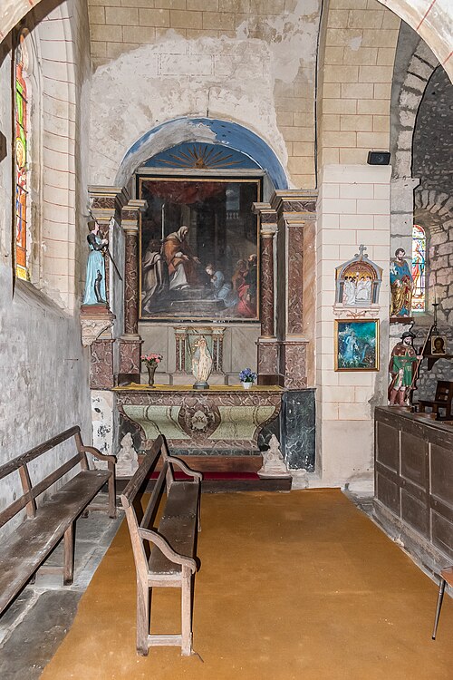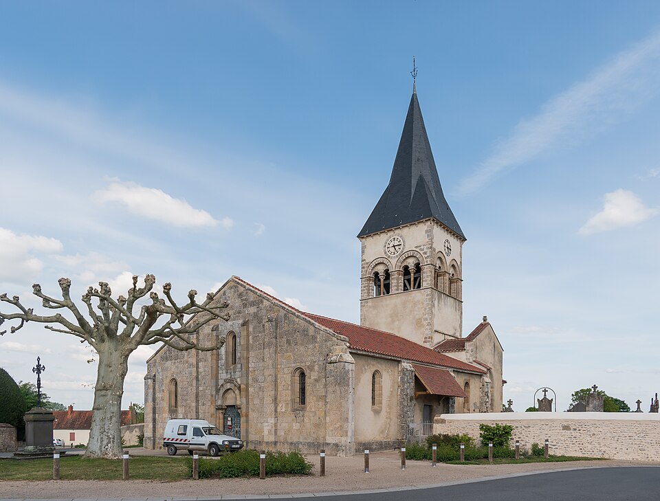 Église Saint-Martial, située au cœur du village de Contigny dans l'Allier, est un édifice de style roman dont les parties les plus anciennes datent du XIe siècle. Elle comportait à l'origine une unique nef de trois travées voûtées ; deux bas-côtés voûtés d'arêtes y ont été ajoutés au XIIe siècle, et une chapelle a été aménagée au sud au XVe siècle. En 1861, une travée supplémentaire a été construite à l'ouest ; le portail primitif a été conservé et déplacé en avant de cette nouvelle travée. Le clocher, de plan carré, présente à son étage sur chacune de ses faces deux baies constituées d'arcatures géminées séparées par une colonnette centrale. Des fenêtres ont été percées à l'époque gothique à l'extrémité des croisillons du transept. L'église conserve des peintures murales : une scène du XVe siècle représentant une dame et un chevalier en prière, et des œuvres du XVIIIe siècle illustrant la Présentation de la Vierge et de l'Enfant au Temple ainsi que la Déposition de Croix. L'édifice est inscrit au titre des monuments historiques depuis 1927.