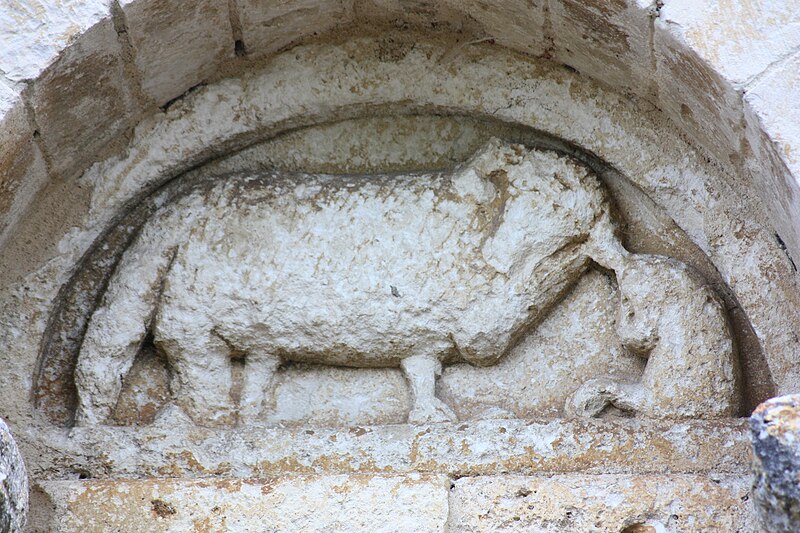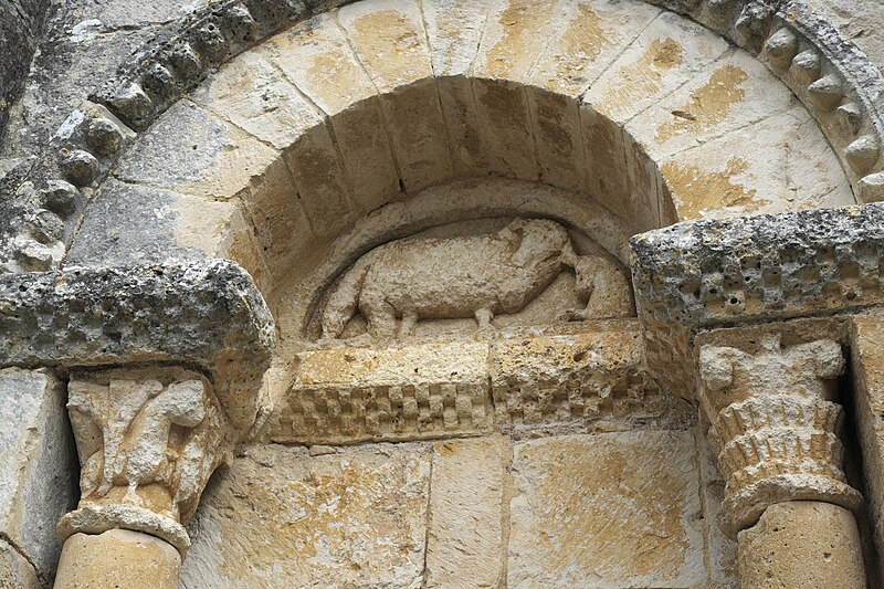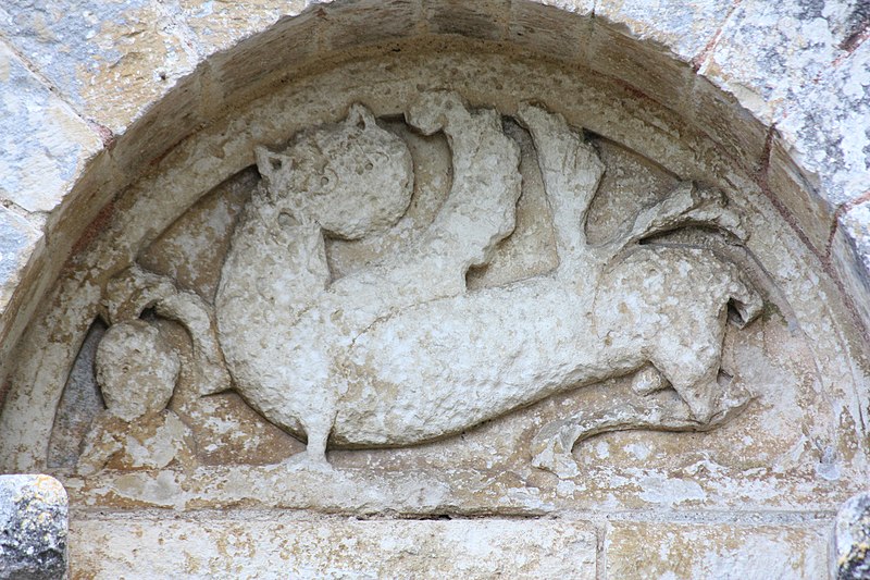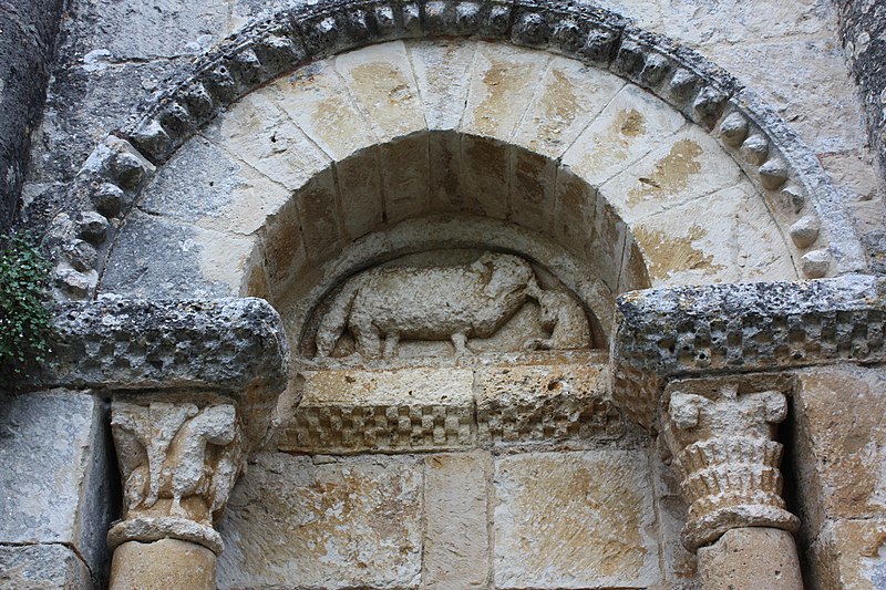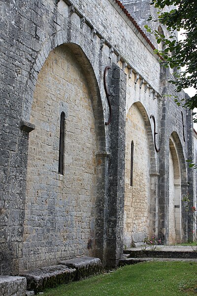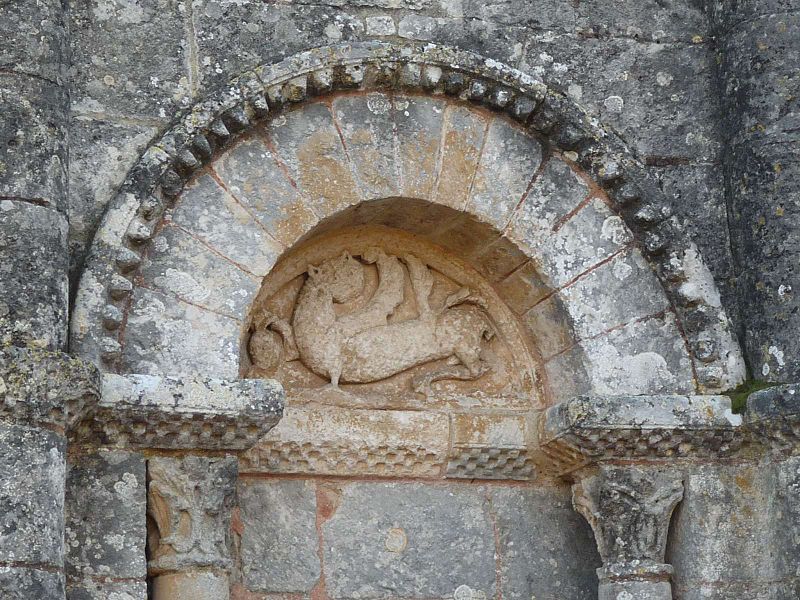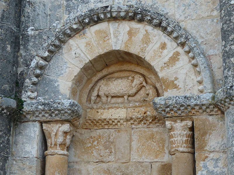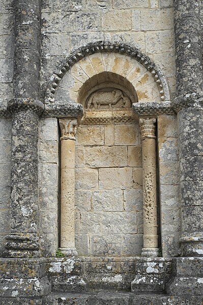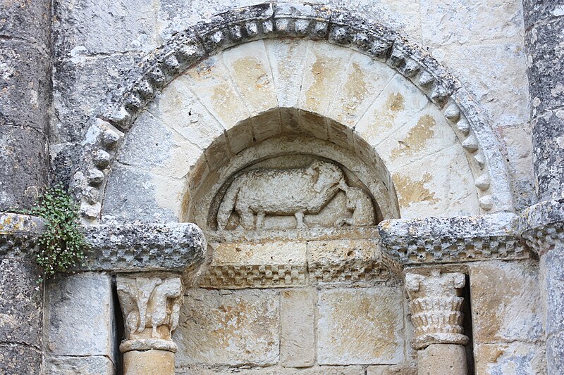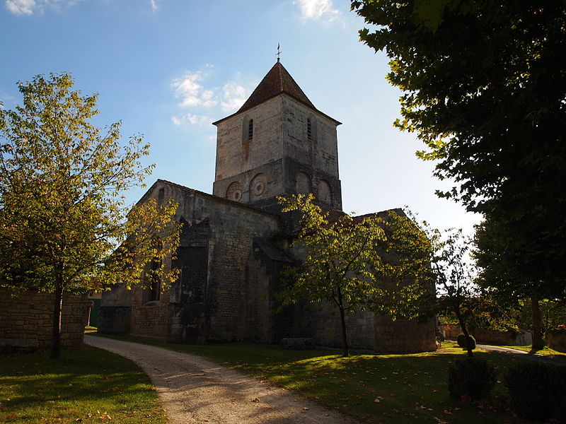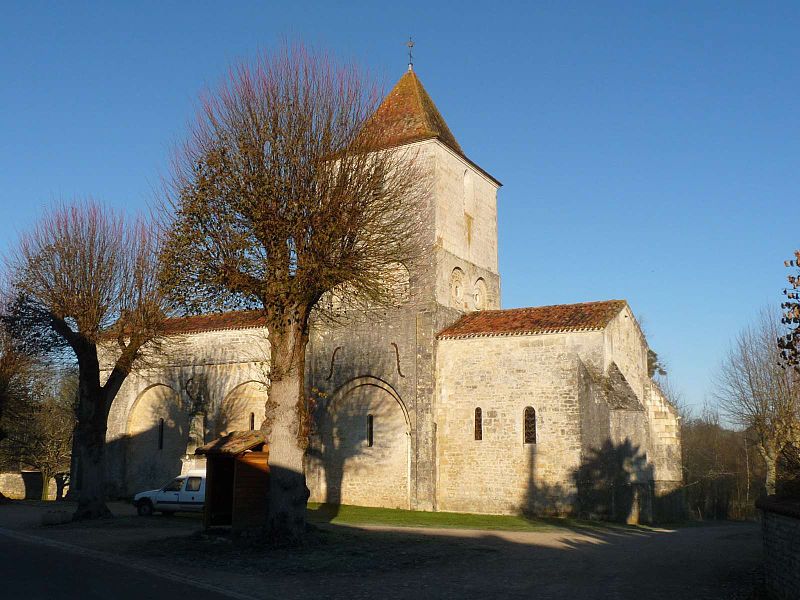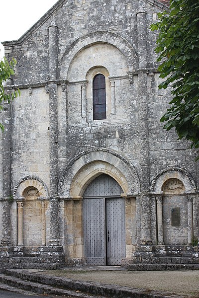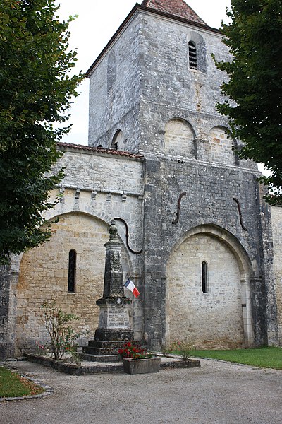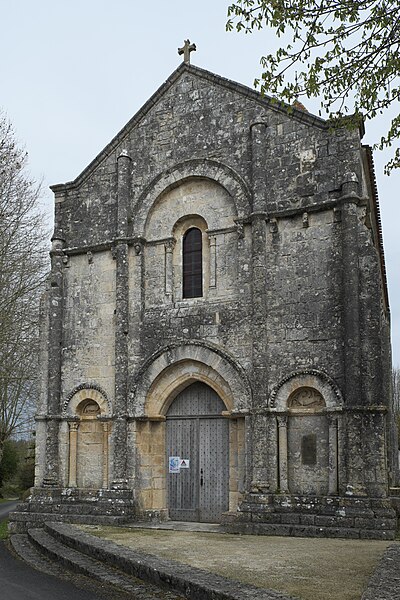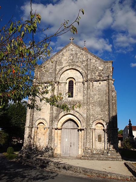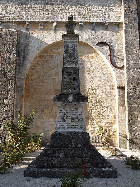 L'église Saint-Martial est une église catholique située à Mouton, en Charente. Une église existait déjà en 900, mais aucun vestige de cette époque ne subsiste. L'édifice a été reconstruit au XIIe siècle et fortifié pendant la guerre de Cent Ans. Son plan comporte une nef unique et adopte la forme d'une croix, avec un chevet plat. Les arcs très brisés du carré du transept y sont particulièrement marqués ; le transept est couvert par une coupole sur pendentifs. Le chœur a été reconstruit au XVe siècle et le croisillon sud a disparu. Le portail est encadré par deux colonnes rondes qui montent jusqu'au sommet de la façade et se terminent en cônes, avec des chapiteaux sculptés. Au‑dessus des portes aveugles, le tympan nord présente un mouton et le tympan sud un dragon ou un lion ailé. L'édifice est classé au titre des monuments historiques par arrêté du 18 août 1955.