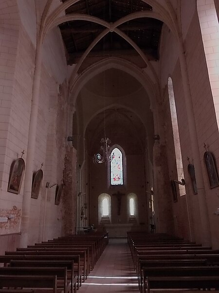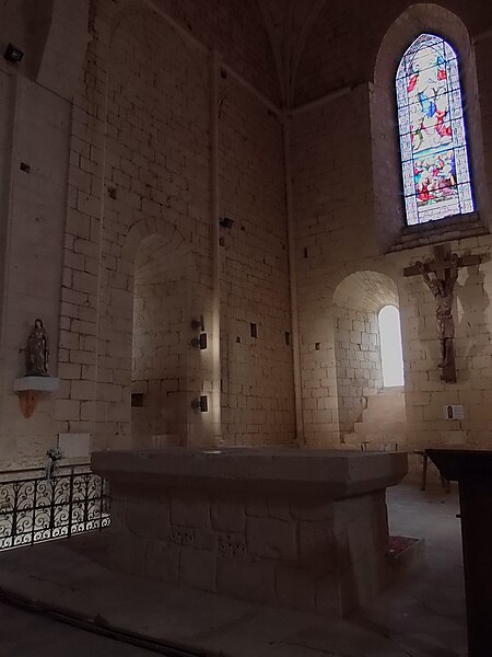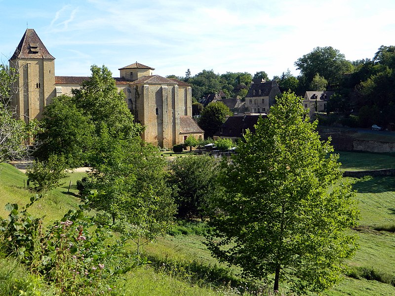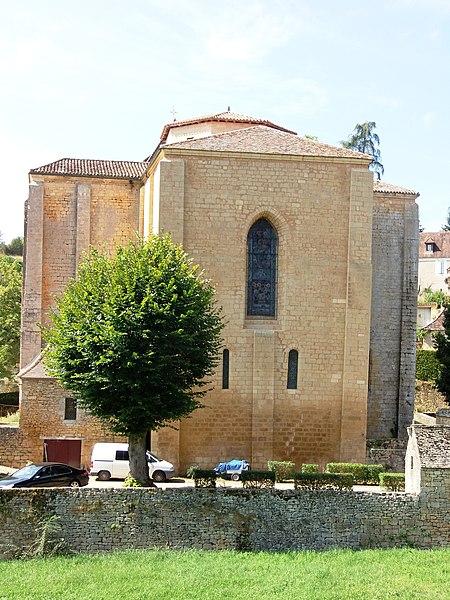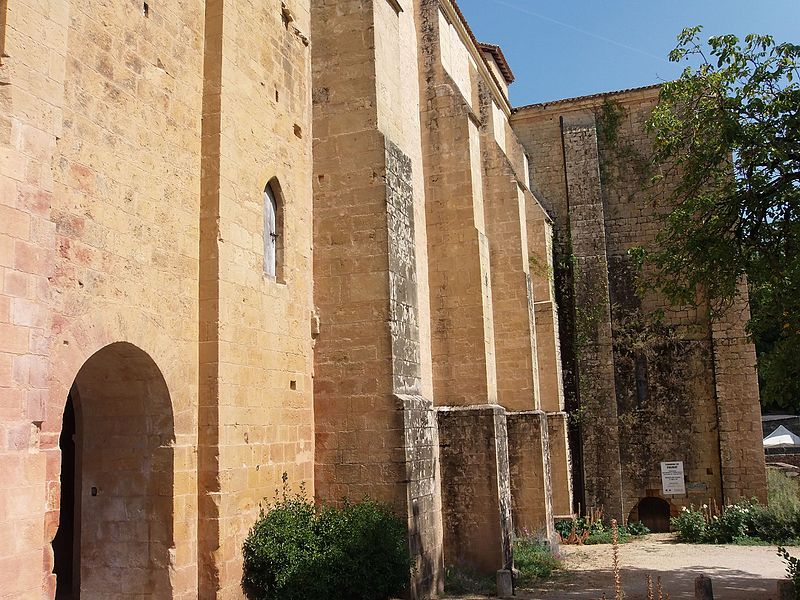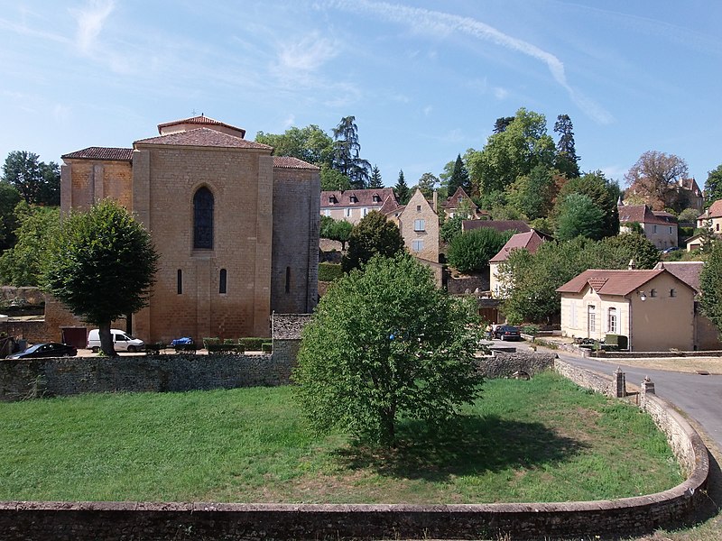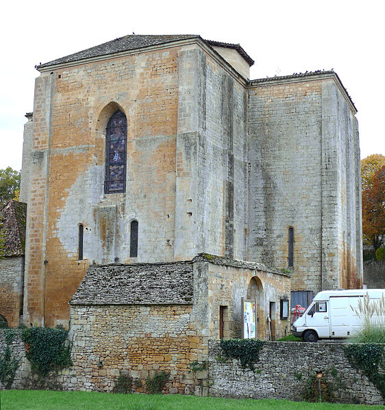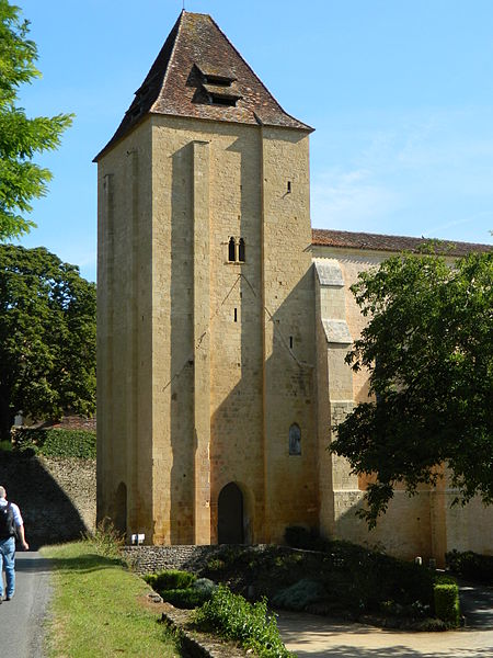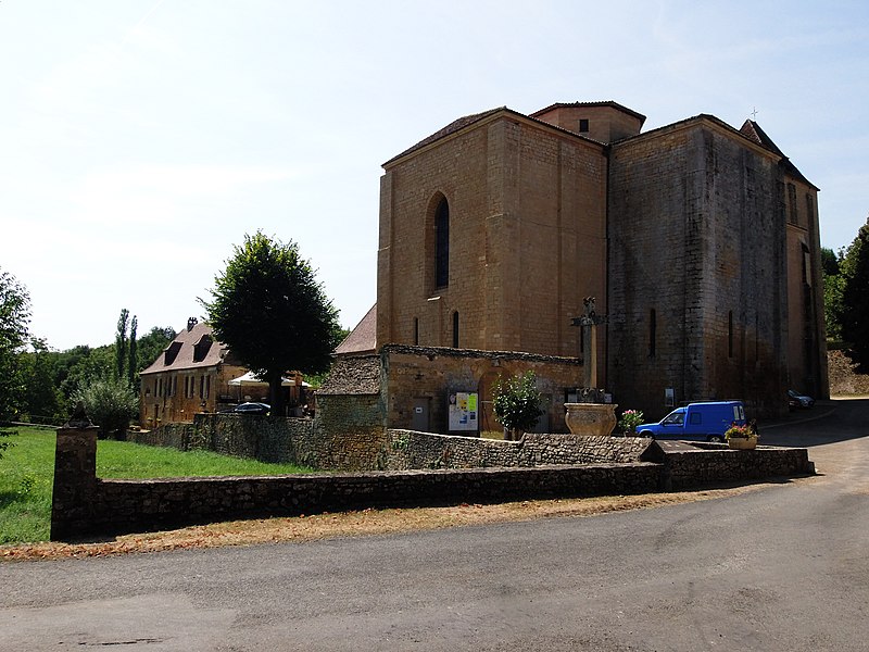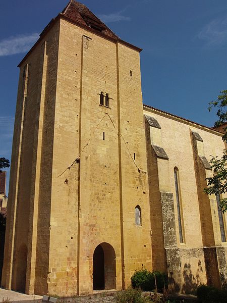 L'église Saint-Martial de Paunat, en Dordogne, est l'abbatiale d'une ancienne abbaye bénédictine ; elle est classée au titre des monuments historiques depuis le 9 juillet 1956 et le terrain aux abords est inscrit depuis le 12 mars 1959. La tradition situe la fondation du monastère au VIe siècle par saint Cybard, qui aurait confié l'église aux religieux de Saint-Martial de Limoges, mais les documents originaux ont disparu et certains textes anciens sont jugés douteux ou apocryphes. Une charte de donation connue par des copies médiévales rattache Paunat à Saint-Martial ; son datation a fait l'objet d'hypothèses divergentes, et une analyse récente propose de la situer au printemps 848, date à laquelle Charles le Chauve accorde aussi des privilèges au monastère. La tradition attribue la destruction du couvent aux invasions normandes vers 849, mais cette chronologie reste incertaine ; les moines, dispersés, participèrent à la fondation d'autres établissements comme Vabres. Après la reconstruction du monastère, des documents ultérieurs mentionnent l'abbé de Paunat et la présence de la communauté ; en 991 l'évêque Frotaire accorde un privilège lors de la bénédiction de l'église. Au XIe siècle Paunat est érigé en prévôté : un prévôt nommé Hugues est attesté en 1080 et un bref pontifical de 1097 cite la prévôté parmi les possessions de Saint-Martial, la communauté comptant alors seize moines. L'église actuelle a été reconstruite entre les XIIe et XIVe siècles ; le clocher-porche date probablement du début du XIIe siècle, tandis que le chœur, voûté en style angevin, et le transept relèvent d'étapes de la campagne de construction médiévale. La guerre de Cent Ans et les périodes d'occupation anglaise entraînèrent des dommages et un affaiblissement des ressources ; pour maintenir la vie monastique la prévôté reçut des renforts de revenus et des travaux de restauration furent engagés ensuite. Au XVe siècle des contrats autorisent l'abattage de bois pour reconstruire et réparer l'abbatiale ; la nef fut alors renforcée par de grands contreforts extérieurs et la voûte du chœur ainsi que la coupole de la croisée furent probablement refaites. Les guerres de Religion au XVIe siècle provoquèrent pillages et dégradations, les seigneurs de Limeuil s'emparant des biens du monastère pendant plus d'un siècle, ce qui réduisit fortement ses revenus. Les visites pastorales des XVIIe et XVIIIe siècles notent l'état dégradé de la nef et des réparations ponctuelles ; la Révolution voit des troubles locaux et la destruction de mobilier en 1789-1790. Au XIXe siècle des travaux importants sont menés pour permettre la poursuite du culte : la voûte de la nef est refaite en briques, les murs gouttereaux sont surhaussés et un vitrail est installé dans le chevet ; de nouvelles cloches sont posées en 1896. L'église est inscrite à l'Inventaire supplémentaire en 1948 puis classée en 1956 ; d'importants chantiers de restauration sont ensuite conduits, le toit étant refait sous la direction de l'architecte en chef des Monuments historiques Bernard Fonquernie en 1975, une tranche majeure de travaux se terminant en 1990, et la statue du Christ offerte par Alain Predo étant installée dans le chœur en 1994 ; des travaux sur le mur nord de la nef sont signalés en 2010. Architectoniquement, l'édifice suit un plan en croix latine et a été conçu aussi comme un refuge en période troublée : le chœur rectangulaire du XIIe siècle est voûté au style angevin, le transept lui est accolé et la nef, reconstruite au XIVe siècle, reçoit ses voûtes en briques au XIXe siècle. Une vaste chambre de défense a été aménagée au-dessus des voûtes du chœur et du transept, probablement prolongée au-dessus de la nef jusqu'à un couloir dans le clocher-porche. Le clocher-porche, peu remanié depuis le début du XIIe siècle, présente une base extérieure quasiment carrée ; l'espace intérieur inférieur forme une travée circulaire ouverte sur quatre portes en plein cintre et couverte d'une coupole, tandis qu'au-dessus se trouve une salle accessible par une porte placée à six mètres de hauteur sur le flanc sud-est. Cette salle, voûtée par une coupole très accentuée qui passe d'une assise carrée à une assise circulaire, est considérée comme singulière en Périgord et était autrefois reliée à la nef par un couloir et une baie ; des traces de bâtiments monastiques ont presque totalement disparu, hormis les solins visibles sur les faces sud de la tour et du transept. Les élévations extérieures sont typiques de la région, faites de grands murs plats en pierres d'appareil rythmés par des contreforts plats.