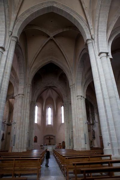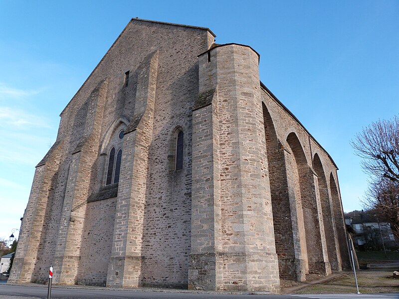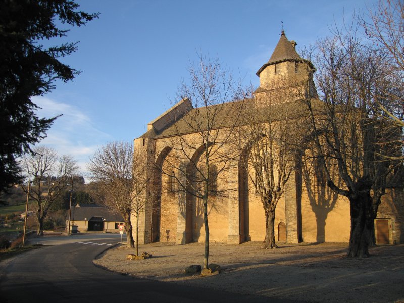 L'église Saint-Martial de Rieupeyroux, édifice de l'ancienne abbaye, se situe au sud de la commune de Rieupeyroux, dans le département de l'Aveyron. Initiée au XIIe siècle et édifiée au XIIIe siècle, elle présente un style plus proche du roman que du gothique. Placée au cœur de la sauveté, elle fut fortifiée pendant la guerre de Cent Ans ; à l'extérieur l'édifice est d'ailleurs protégé sur trois faces. De grands arcs, bandés d'un contrefort à l'autre, sont percés chacun d'un mâchicoulis desservi par un chemin de ronde continu. L'entrée occidentale a été murée lors des guerres de Religion ; l'accès s'effectue désormais par le portail nord. Près du chœur, les chapiteaux montrent une inspiration romane. Les deux doubleaux latéraux du chœur, établis de biais, permettent d'adapter la largeur de la nef à une abside à trois pans sensiblement plus large. La lanterne octogonale présente huit nervures rayonnantes qui se terminent par une lancette ; les quatre pans coupés sont fermés par des voutains triangulaires. Deux fenêtres ont été agrandies au XIXe siècle. L'édifice est classé au titre des monuments historiques par arrêté du 30 mai 1923.