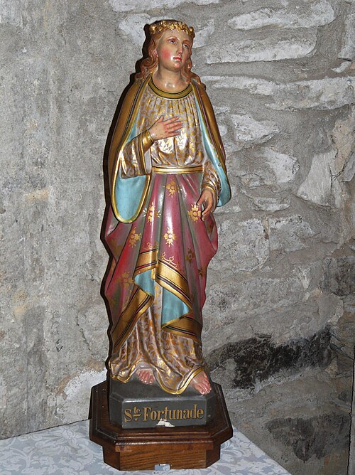 L'église Saint-Martial de Sainte-Fortunade (Corrèze, Occitanie) est un édifice catholique dont le sanctuaire et le chœur sont d'époque romane. L'édifice présente, à l'extérieur, des pans coupés percés de baies en plein cintre et des corbeaux sculptés ; le chœur est surmonté d'un clocher carré. À l'intérieur, plusieurs chapiteaux sculptés attirent l'attention : l'un représente deux guerriers en costume d'époque en combat, un autre montre saint Pierre tenant les clefs et remettant la crosse à saint Martial. Datée du XIIe siècle, l'église paraît avoir été édifiée sur l'emplacement d'un bâtiment plus ancien mentionné dans le cartulaire de l'abbaye de Tulle dès 894. La paroisse a porté le nom de Saint-Martial, en hommage à l'évêque de Limoges Saint-Martial-le-Noir, avant d'adopter par la suite le vocable de Sainte-Fortunade. Selon la tradition, les reliques d'une jeune martyre, en cours de transfert d'Agen vers la Bourgogne, auraient manifesté par des miracles, près de la fontaine de Chabrignac, le désir de rester dans la paroisse. L'église est inscrite au titre des monuments historiques depuis le 26 janvier 1927. Parmi les objets protégés présents dans l'église figurent un chef-reliquaire de sainte Fortunade, deux reliquaires pédiculés à monstrance (l'un en forme de tourelle, l'autre cylindrique et horizontal) et une statuette de la Vierge de Pitié.