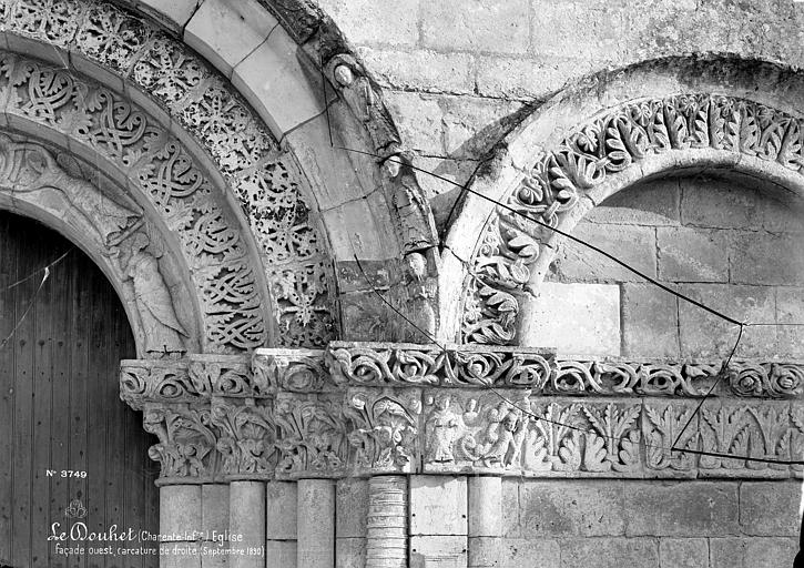L'église Saint-Martial, située au Douhet (Charente‑Maritime, France), est un édifice à nef unique du XIIe siècle, voûtée en berceau et dotée d'une abside en cul-de-four. Le clocher, adossé au chœur, formait au XIIe siècle une tour carrée s'élevant au‑dessus d'une coupole sur trompes; il a été surmonté au XVe siècle d'une flèche octogonale dont les quatre angles s'amortissent sur des pinacles. Suivant un type fréquent en Saintonge, la façade principale est divisée en trois parties : la partie centrale abrite la porte, les deux parties latérales présentent des arcatures à applique qui épaulent l'entrée. Une tablette soutenue par des corbelets sculptés porte une ordonnance de trois arcatures dont les arcs extradossés affleurent le pignon. Les arcs reposent sur des pilastres cantonnés de deux colonnettes, et un décor d'archivoltes ainsi qu'une frise se prolongent jusqu'à la hauteur des chapiteaux. L'église Saint-Martial est classée au titre des monuments historiques en 1915.