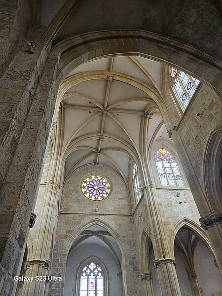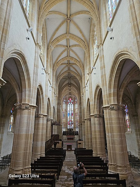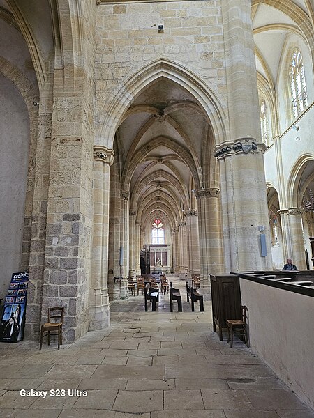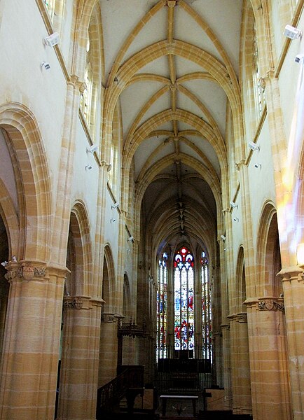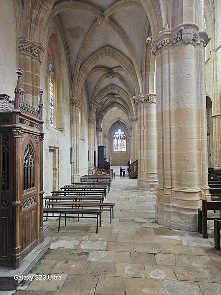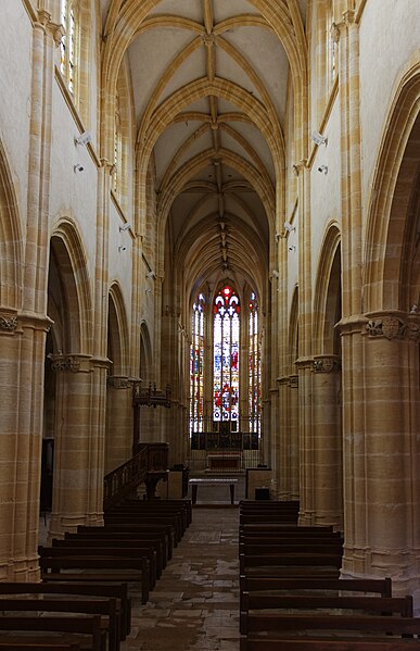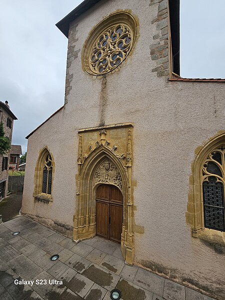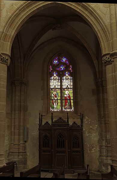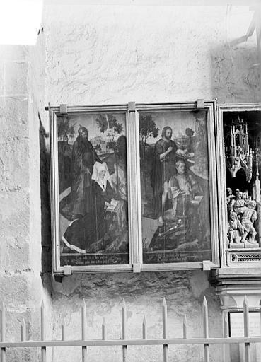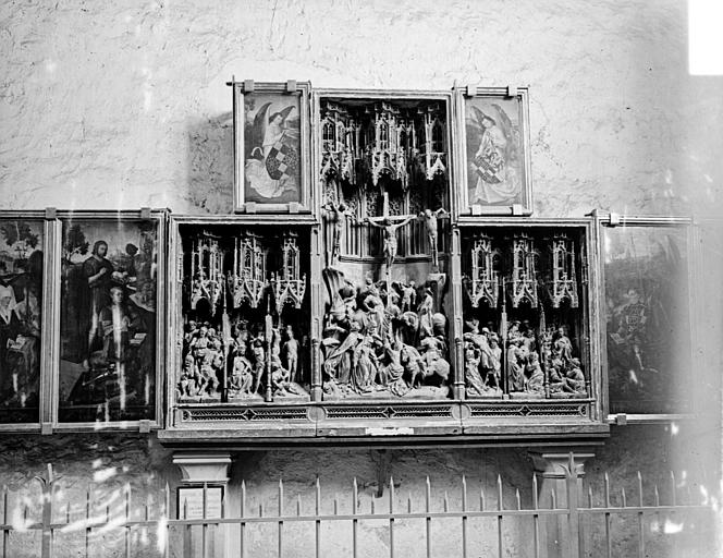 Le retable de la Passion, légué au prieuré en 1476 par Michel de Changy, conseiller de Philippe le Bon, comporte en sa partie centrale des statues en noyer polychrome figurant des épisodes de la Passion, et ses volets peints sont attribués selon les spécialistes à Rogier van der Weyden ou au maître d'Ambierle. Les petits volets supérieurs représentent à l'extérieur l'Annonciation et à l'intérieur des anges portant les armes des familles de Chaugy, de Montagu et de Jaucourt. Les volets inférieurs montrent à l'extérieur sainte Anne, la Vierge et l'Enfant, sainte Catherine, sainte Marguerite et saint Martin, tandis qu'à l'intérieur figurent des associations de saints et de donateurs (saint Guillaume et Guillemette de Montaigu ; saint Jean-Baptiste et Jean de Chaugy ; Michel de Chaugy et saint Michel ; Laurette de Jaucourt et saint Laurent). Ce retable a été classé au titre des objets en 1904. Le retable du bras sud du transept, daté du XVIIe siècle, présente une Vierge dans une niche centrale encadrée de colonnes torses et des statues latérales ; il a été classé en 1982. L'église conserve également des verrières remarquables réalisées entre 1470 et 1485 portant les armes d'Antoine de Balzac d'Entragues, ainsi que 22 stalles du chœur réalisées dans le quatrième quart du XVe siècle ; ces éléments ont été classés.
