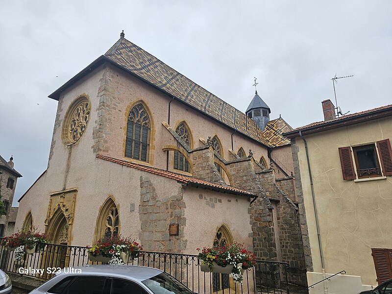 L'église paroissiale Saint-Martin était à l'origine la chapelle d'une abbaye bénédictine, rattachée à l'ordre de Cluny en 938 puis réduite au statut de prieuré en 1101. L'édifice actuel a été élevé au XVe siècle par le prieur Antoine de Balzac d'Entragues sur les vestiges d'une chapelle romane du XIe siècle, construite par Odilon de Cluny et détruite par un incendie en 1441 ; il reçoit depuis les fidèles de la paroisse. Un nouvel incendie en 1746 a entraîné des réparations la même année, et les derniers moines ont quitté le prieuré en 1788, mettant fin à la présence monastique à Ambierle. L'église se distingue par sa toiture de tuiles polychromes vernissées de style bourguignon et par un campanile ajouté à la croisée du transept au début du XIXe siècle. L'édifice figure sur la première liste des monuments historiques établie par Prosper Mérimée en 1840 ; ses façades et ses toitures ont été inscrites en 2010 et le prieuré, incluant tous les anciens bâtiments, classé en 2011.