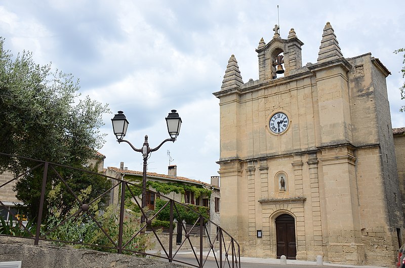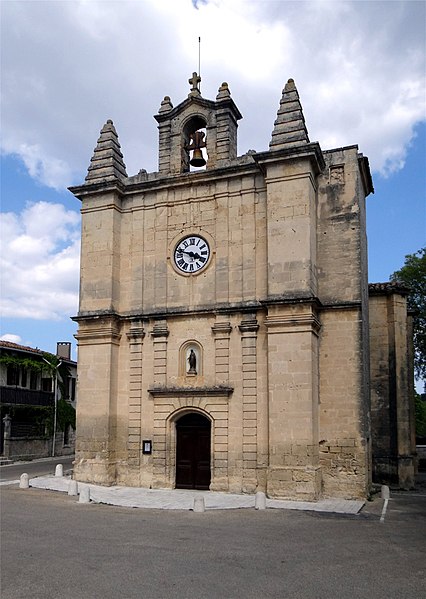 De plan simple, elle présente une nef unique de deux travées flanquée, avant le chœur, de deux chapelles rectangulaires ; l'abside est à trois pans. La façade, cantonnée de deux contreforts, est divisée en deux étages par un entablement rythmé par deux paires de pilastres à bossages au premier étage et lisses au second. La porte d'entrée, munie d'une archivolte en arc surbaissé, est également encadrée d'un appareil à bossages, et le second niveau accueille un oculus cerclé d'une moulure torique. Les contreforts d'angle sont surmontés de petites pyramides à bossages et, entre elles, s'élève un clocher-arcade couronné d'une croix et encadré par deux pilastres supportant deux petites pyramides. Le chevet présente une alternance régulière d'assises hautes et étroites, technique romane très utilisée dans la région, désignée comme opus monspelliensis ; sa persistance au XVIIIe siècle est notable.