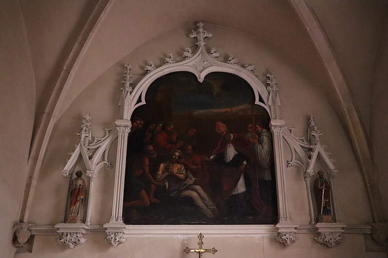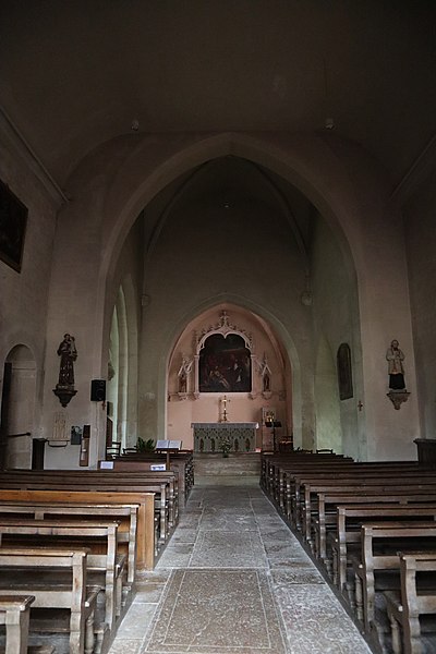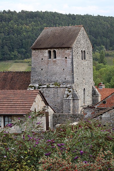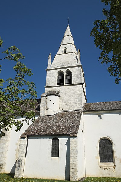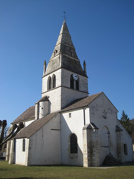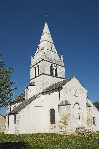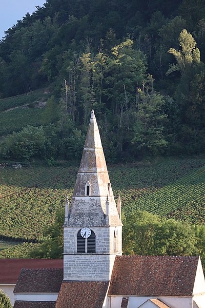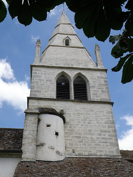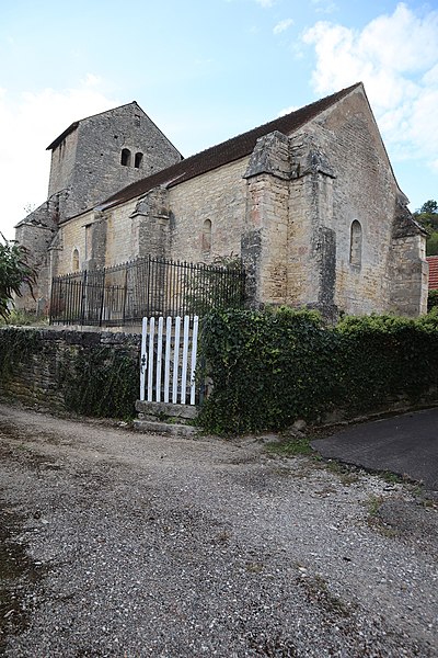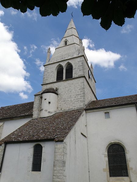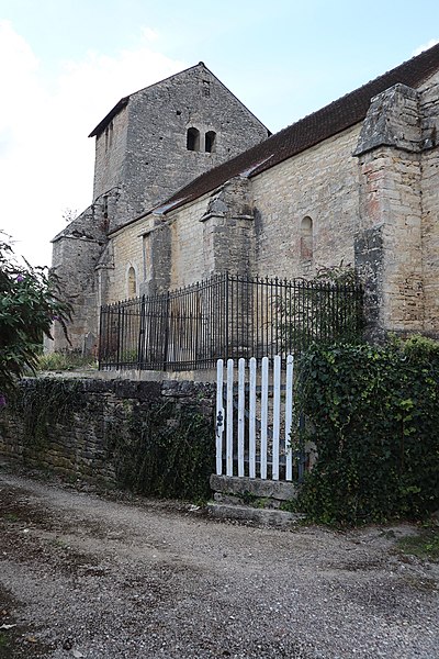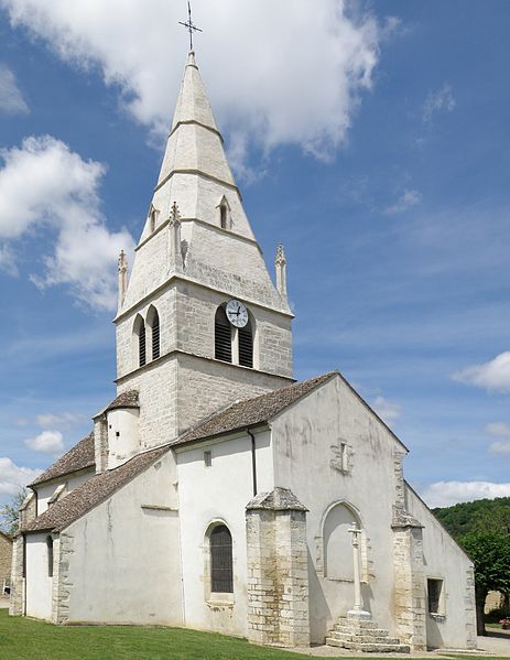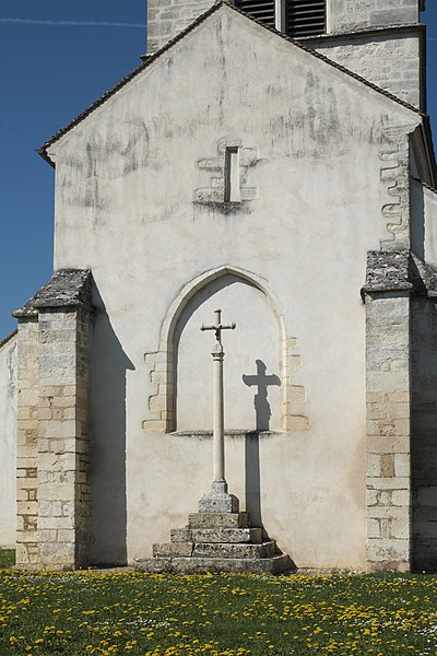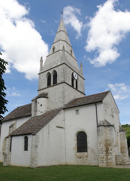 L’église Saint-Martin d’Auxey‑Duresses, située sur la route des Grands Crus en Côte‑d’Or, est évoquée comme « église neuve » dans une archive citée par Armand Veau en 1223. Les sources indiquent des campagnes de construction et de remaniement réparties du XIVe au XVIe siècle, la plus grande partie de l’édifice étant attribuée au XVe siècle, notamment le clocher. À l’origine, l’église ne comportait qu’une nef avec, accolée, la chapelle Saint‑Barthélemy placée sous un patronage seigneurial. L’ensemble était intégré à une forteresse détruite à la fin du XVIe siècle ; les documents mentionnent les années 1593 et 1595 et évoquent l’intervention des ligueurs. Parmi les vestiges de cette vocation militaire, deux archères percées sur le chevet et dans la chapelle latérale nord subsistent encore. Lors de la reconstruction de la nef, les fossés furent comblés en 1771 avec des matériaux de démolition. La sacristie a été ajoutée en 1703; les chapelles formant le transept ont été agrandies entre 1839 et 1846 au cours d’importants travaux, et le sas d’entrée est d’époque postérieure. L’église était entourée d’un cimetière et la croix monumentale placée au chevet a été déplacée, comme le montrent des images anciennes. L’édifice est inscrit aux Monuments historiques par arrêté du 28 janvier 1927.