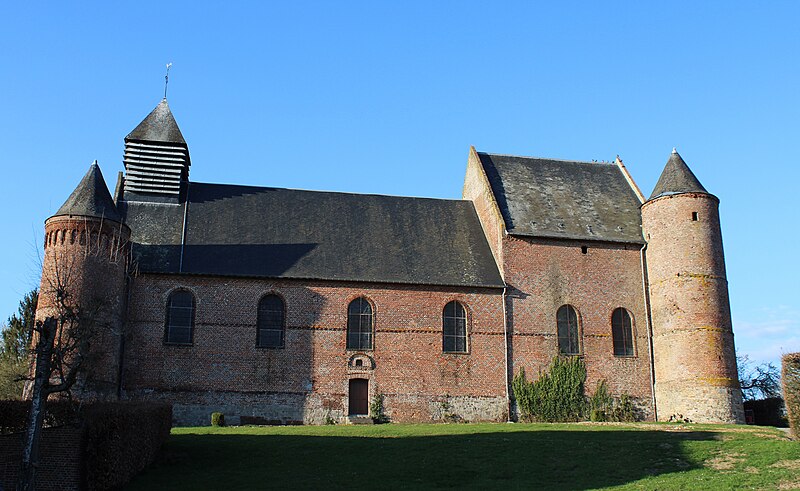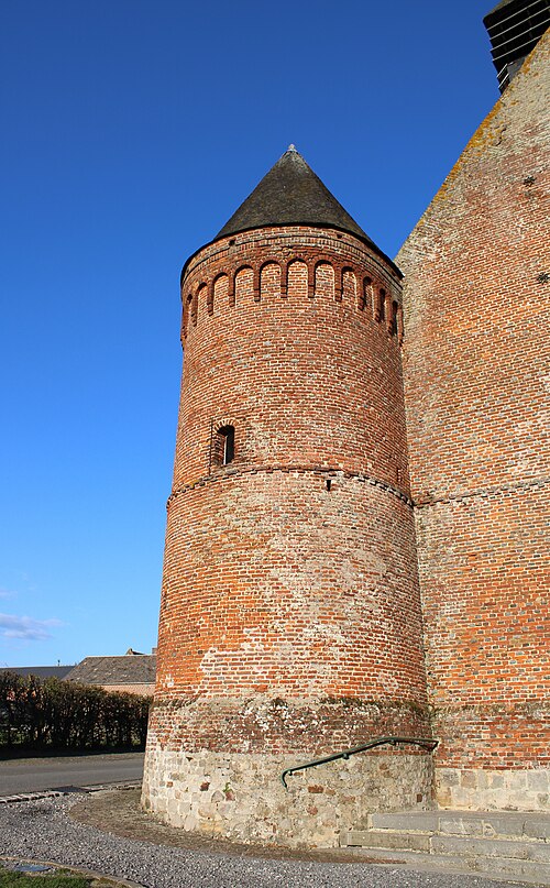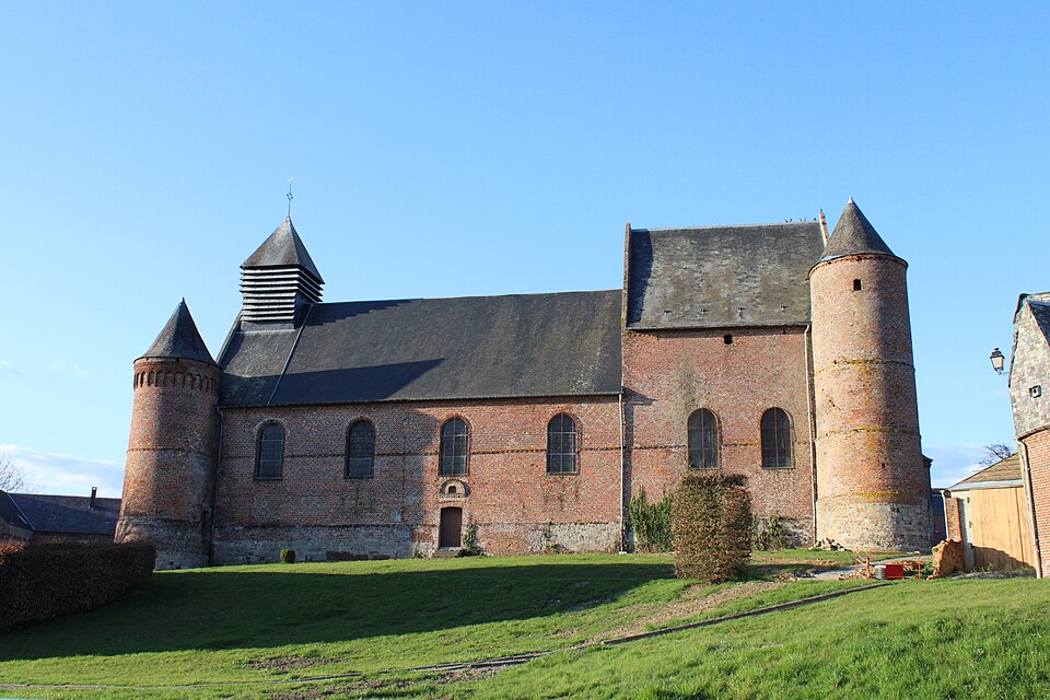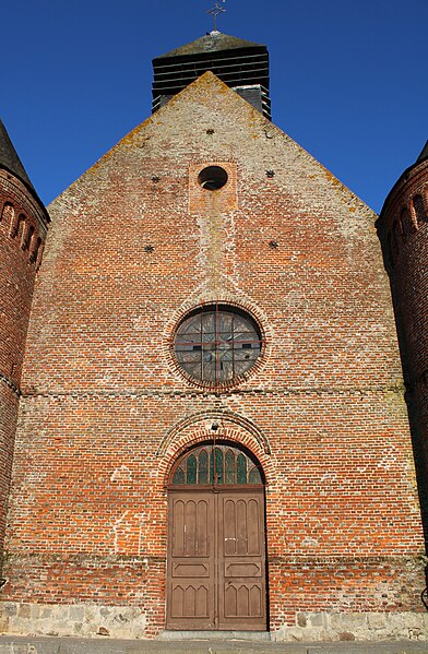 L'église Saint-Martin d'Esquéhéries se dresse sur un tertre dominant le village. Elle est construite entièrement en briques, à l'exception du soubassement extérieur en grès. L'édifice forme un rectangle de 33 × 11 mètres, flanqué à chaque angle d'une tour saillante d'environ 5 mètres de diamètre. La nef comporte quatre travées dont les baies furent agrandies au XIXe siècle ; jadis plafonnée, elle est depuis 1922 voûtée d'ogives en briques creuses. Très homogène malgré des remaniements aux XIXe et XXe siècles, l'église paraît avoir été élevée d'un seul jet dans la première moitié du XVIIe siècle. Conçue plutôt comme église refuge que comme fortification, elle comporte une salle forte et environ quarante meurtrières réparties sur l'ensemble de l'édifice. Par sa taille et sa cohérence, elle figure parmi les plus remarquables églises de la Thiérache. Sa reconstruction s'étend entre 1570, date à laquelle le duc de Guise autorisa la vente de terres pour cet usage, et 1670, année portée sur une poutre de la salle forte. Pendant la Révolution, l'église servit de fabrique de poudre. Le cimetière qui l'entourait, devenu insuffisant, fut progressivement abandonné après la création d'un nouveau cimetière à la limite de la commune vers 1850. Dans le dernier quart du XIXe siècle, des travaux concernèrent l'agrandissement ou le percement de baies et la sacristie fut édifiée à la même époque. Retirée de la liste des Monuments Historiques par arrêté du 28 octobre 1886, elle fut très endommagée lors des bombardements de la Première Guerre mondiale puis restaurée vers 1922, perdant son plafond d'origine au profit de la voûte d'ogives. L'édifice a été inscrit à l'Inventaire supplémentaire des Monuments Historiques le 22 mars 1934, selon les archives. Les vitraux et l'essentiel du mobilier sont répertoriés à l'inventaire général du patrimoine culturel, comprenant notamment un christ du XVIe siècle, ainsi qu'une cuve baptismale, un confessionnal et une armoire du XVIIe siècle.