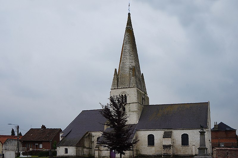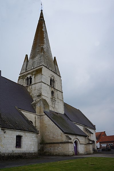 L'église Saint-Martin se situe à Esquerdes, dans le Pas-de-Calais. Elle a été édifiée entre les XIIe et XVIIe siècles. Selon Camille Enlart, elle comprenait à l'origine une nef simple non voûtée, une tour centrale barlongue à l'étage supérieur octogonal, un petit transept, un chœur probablement voûté en berceau et une abside dont le plan pourrait être semi-circulaire voûté en cul-de-four. Au début du XIIIe siècle, le sanctuaire est allongé et, dans la première moitié du siècle, la tour reçoit une flèche. Le chevet est modifié par l'ajout d'une travée droite voûtée — peut-être en berceau — et d'une petite abside à plan voûtée d'ogives sans contreforts. L'étage supérieur du clocher est transformé extérieurement : l'octogone d'origine est en partie converti en plan rectangulaire par l'adjonction de quatre angles maçonnés et le bouchage de la moitié des baies, tandis que les autres faces de l'octogone demeurent inchangées. Une flèche de pierre octogonale élancée, cantonnée de quatre hautes pyramides quadrangulaires, est élevée; pour en reprendre le poids, les arcs qui supportent la tour sont renforcés par l'épaississement des piliers et l'ajout d'arcs en tiers point sous les arcs romans. Dans la première moitié du XIVe siècle des travaux importants interviennent après la mort d'une dame d'Esquerdes qui demanda à être inhumée et à fonder une chapelle : un tombeau est placé dans la paroi nord du chevet, la paroi opposée est percée de trois arcades et une chapelle sud de trois travées voûtées d'ogives est accolée, tandis que le bras méridional du transept est modifié. Au XVe siècle, la seigneurie d'Esquerdes appartient à la famille de Crèvecœur, notamment à Philippe de Crèvecœur d'Esquerdes. En 1518, Antoine du Bois, seigneur d'Esquerdes et évêque de Béziers, offre une cloche à l'église. Le village subit des dommages causés par des troupes françaises, impériales et anglaises : des ravages imputés aux troupes de François Ier sont relevés, avec une seconde dévastation en 1542, puis des attaques anglaises en 1544 entraînant l'abandon du village et le refuge de la population à Saint-Omer. La nef est rebâtie au deuxième quart du XVIe siècle et couverte d'une charpente et d'un lambris; de nouveaux dégâts entraînent des travaux à la fin du XVIe et au XVIIe siècle, et les autels et retables datent du XVIIe siècle. L'édifice est classé au titre des monuments historiques le 17 avril 1914. Une étude de Camille Enlart, « Notice sur l'église d'Esquerdes », est citée en bibliographie.