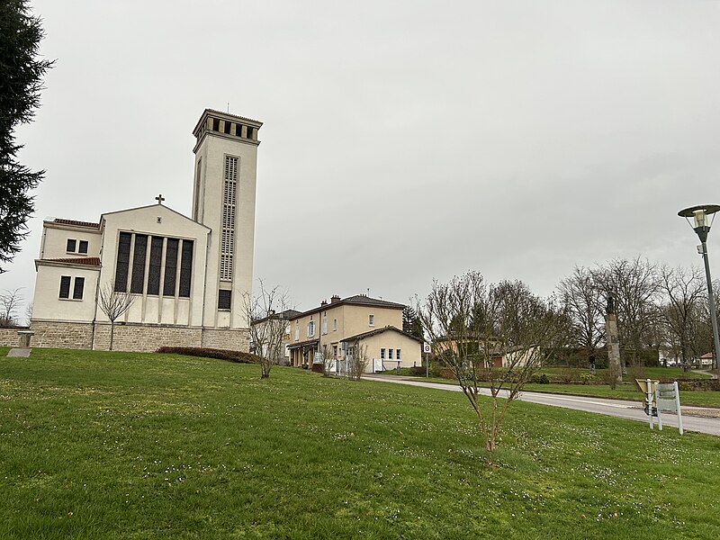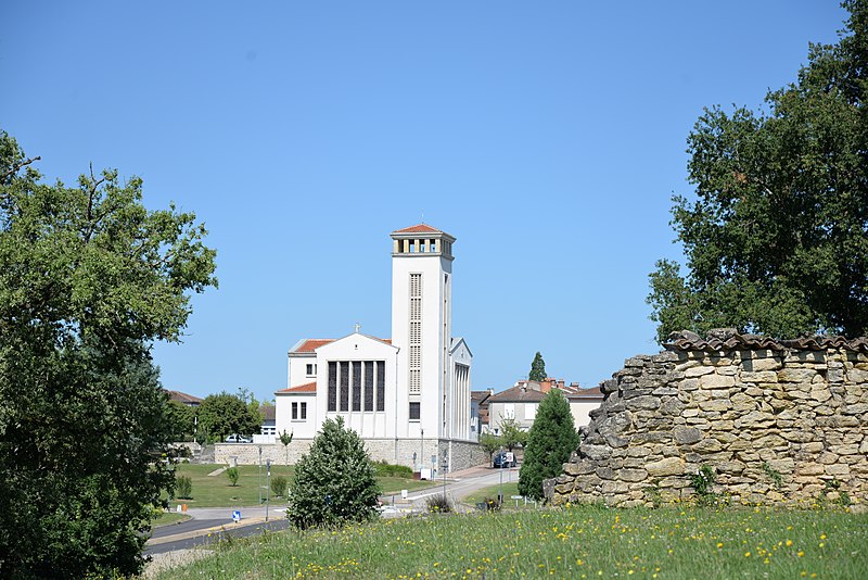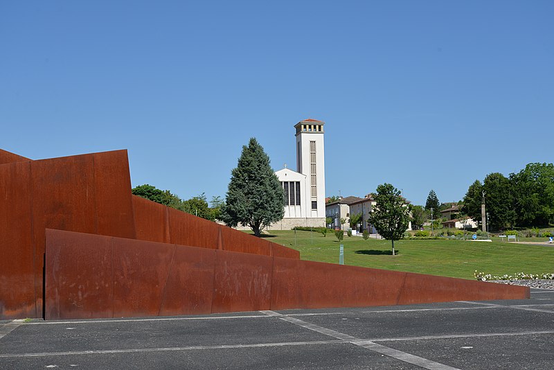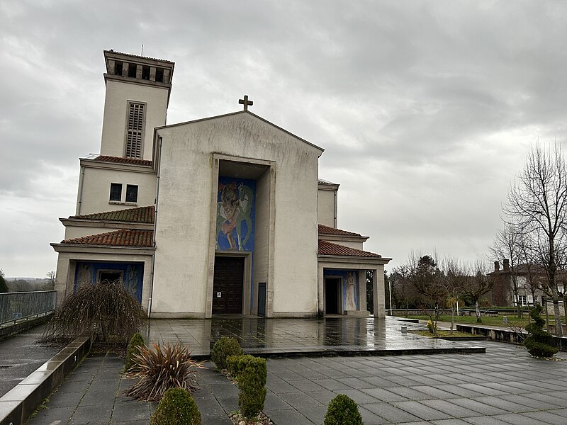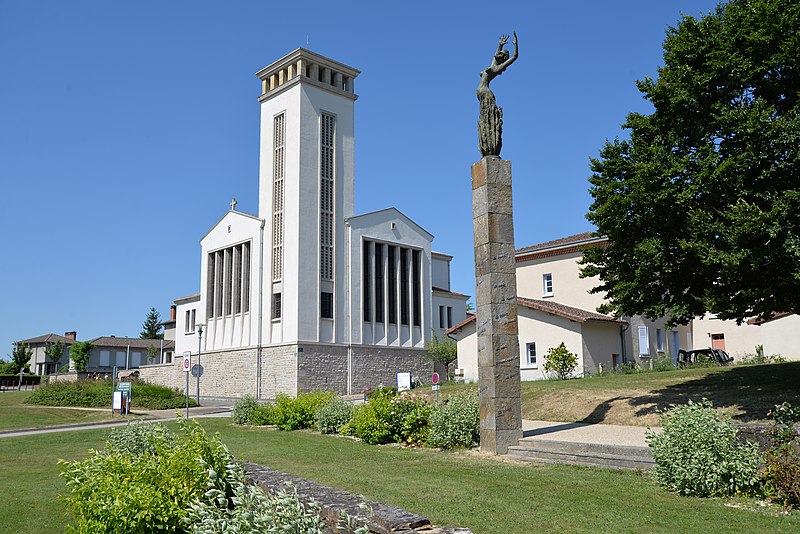 L'église Saint-Martin du nouveau bourg d'Oradour-sur-Glane a été élevée lors de la reconstruction du village après sa destruction par la division "Das Reich" le 10 juin 1944. La reconstruction du bourg fut réalisée à l'ouest de l'ancien village ; dernier édifice public construit en 1952-1953, l'église domine l'entrée du nouveau bourg et le centre de la mémoire. Bâtie en partie en béton pour ses structures porteuses et les encadrements de baies, ses murs sont en maçonnerie de moellons de granit couverts d'un enduit blanc. De plan rectangulaire au sol, l'architecte a obtenu l'effet d'une croix en jouant sur les volumes : le porche monumental de la façade principale suggère, en vue aérienne, un plan en croix latine, tandis qu'à l'intérieur la présence aux angles du clocher, de la chapelle à l'est et des bas-côtés à l'ouest confère au sanctuaire un plan en croix grecque. La façade principale porte des peintures murales représentant saint Martin au centre entouré d'anges, et les autres façades s'ouvrent par cinq hautes verrières étroites. Le décor a été confié à des artistes reconnus, avec des vitraux de P. Parot et Francis Chigot et des peintures murales de Jean Burkhalter. Côté est, une statue d'Apel·les Fenosa est dédiée aux martyrs d'Oradour. L'édifice, de style sobre et monumental, est inscrit au titre des monuments historiques en 2012. Des références et ressources relatives à ce patrimoine figurent dans les bases et observatoires consacrés au patrimoine religieux et à l'architecture.