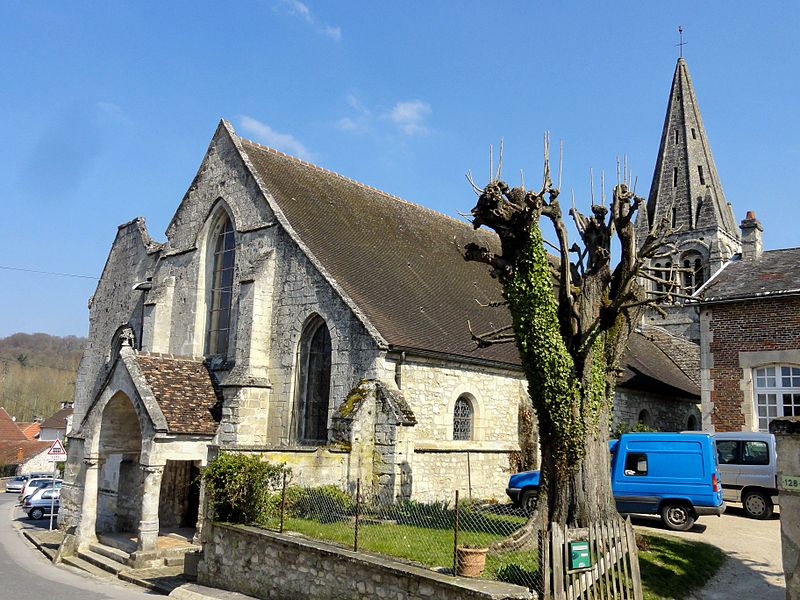 Située rue de l’Église, la façade occidentale de l’église s’aligne sur la voie publique sans parvis ; un parking public se trouve au nord du bas-côté nord. Le bas-côté sud donne sur le jardin du presbytère ancien, aujourd’hui maison particulière, et la circulation piétonne vers le cimetière permet d’apercevoir le clocher et le flanc sud du chœur. Le chevet et le flanc nord du chœur sont enclavés dans des terrains privés et ne se révèlent pleinement que depuis la pente boisée située en face, accessible par un long détour ; la configuration parcellaire empêche d’obtenir une vue d’ensemble panoramique de l’édifice.